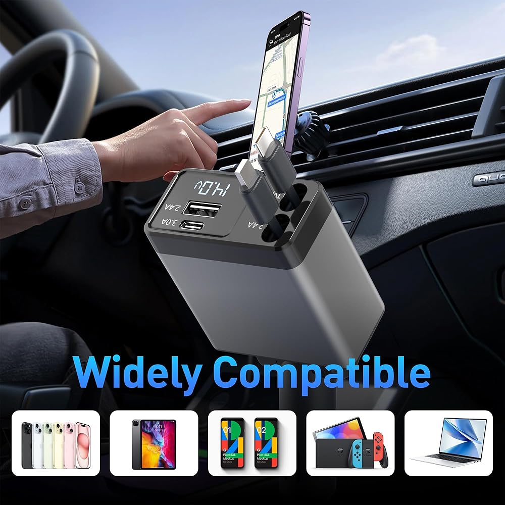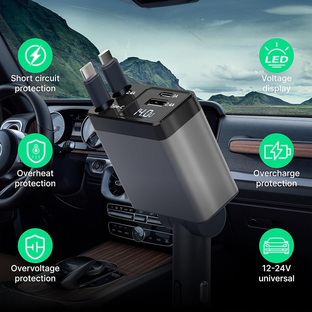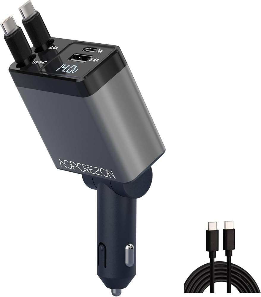 🚗شاحن سيارة قابل للسحب من AOPREZON، نحن نقدم ضمان الجودة لمدة 365 يومًا!