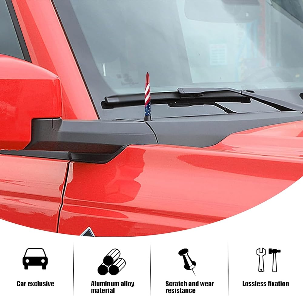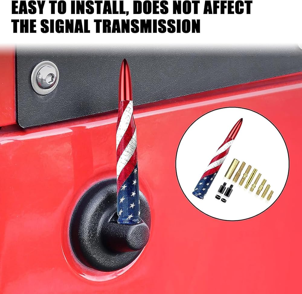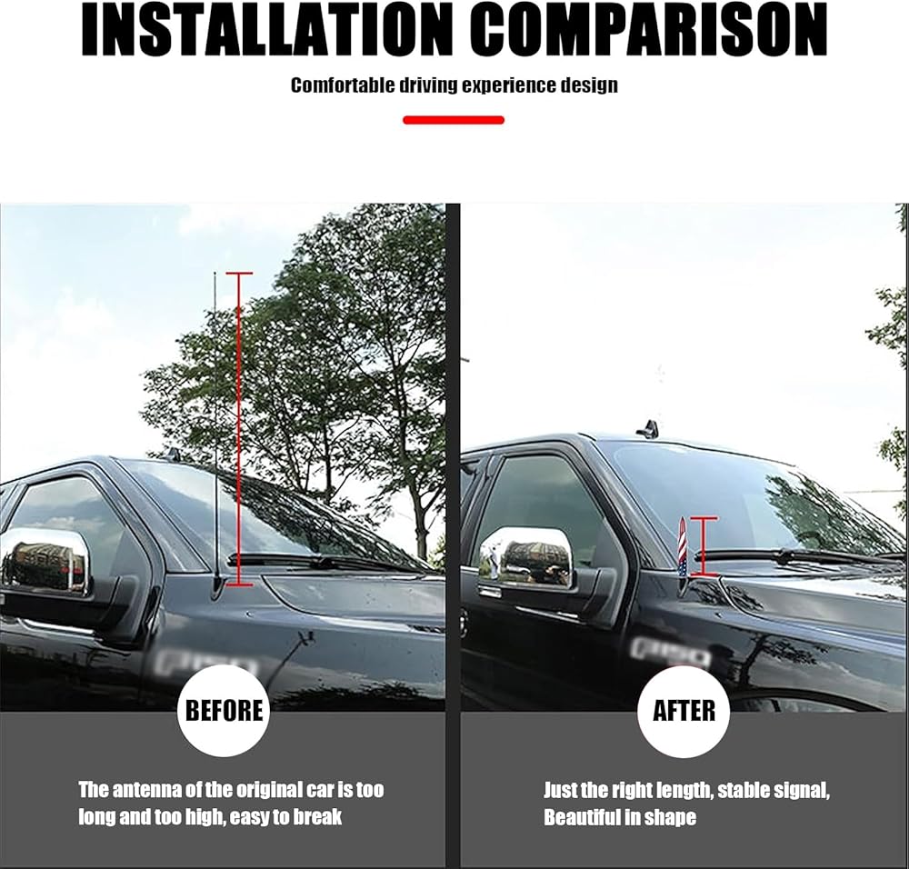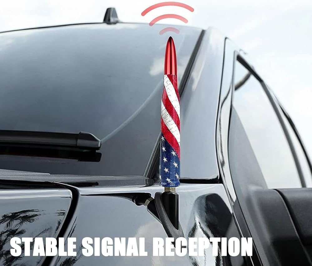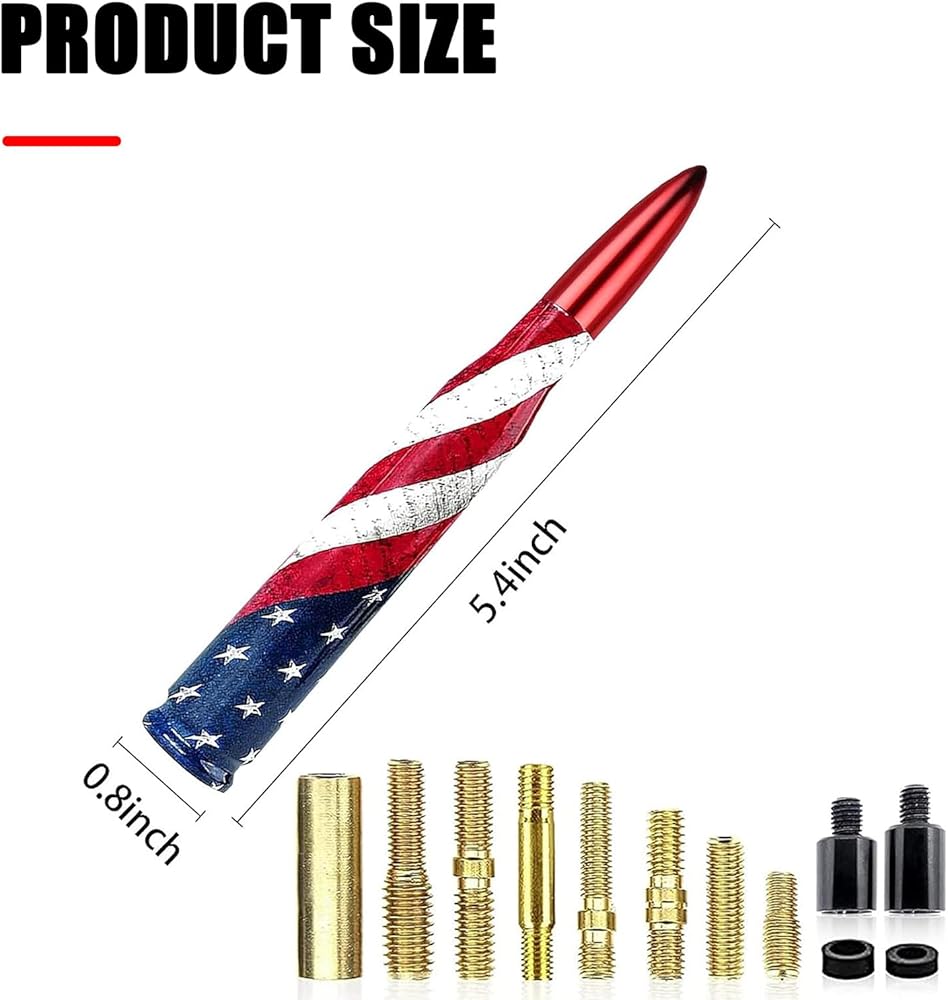 • Special Design: American flag design, the bullet-shaped antenna with smooth curve and smooth appearance is additionally suitable for pickup trucks, off-road vehicles, the short antenna will not bend or snap when you go through the auto car wash.