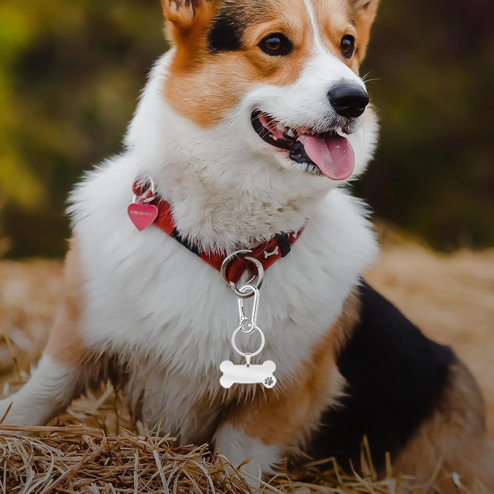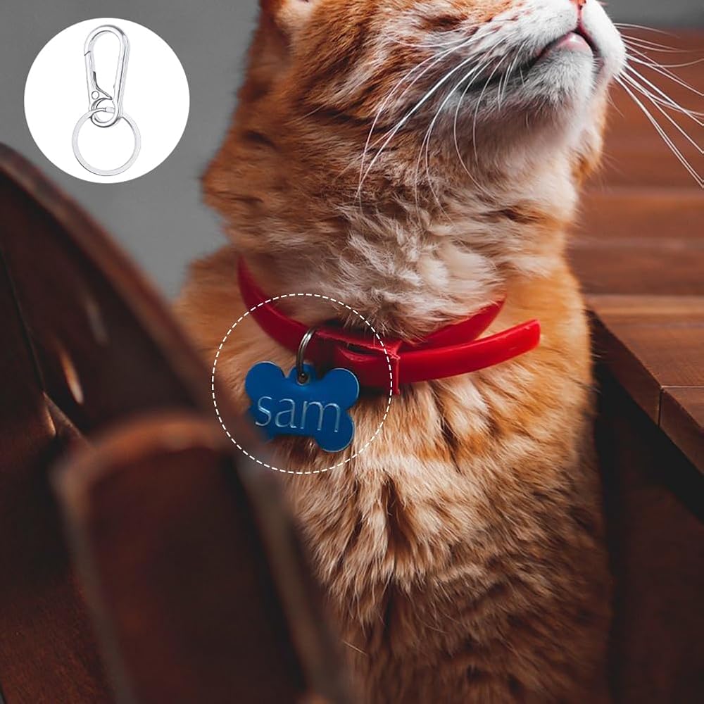 • 【DURABLE STAINLESS STEEL】- Set of 4 dog tag clips, It can fasten dog collars, dog chains, dog name tags, and dog bells. Additionally, it can be used as a car keychain. It's made of stainless steel and has undergone an upgrade with enhanced thickness, it ensures sturdy and durable. It also maintains its appearance and performance.