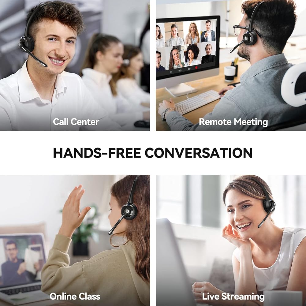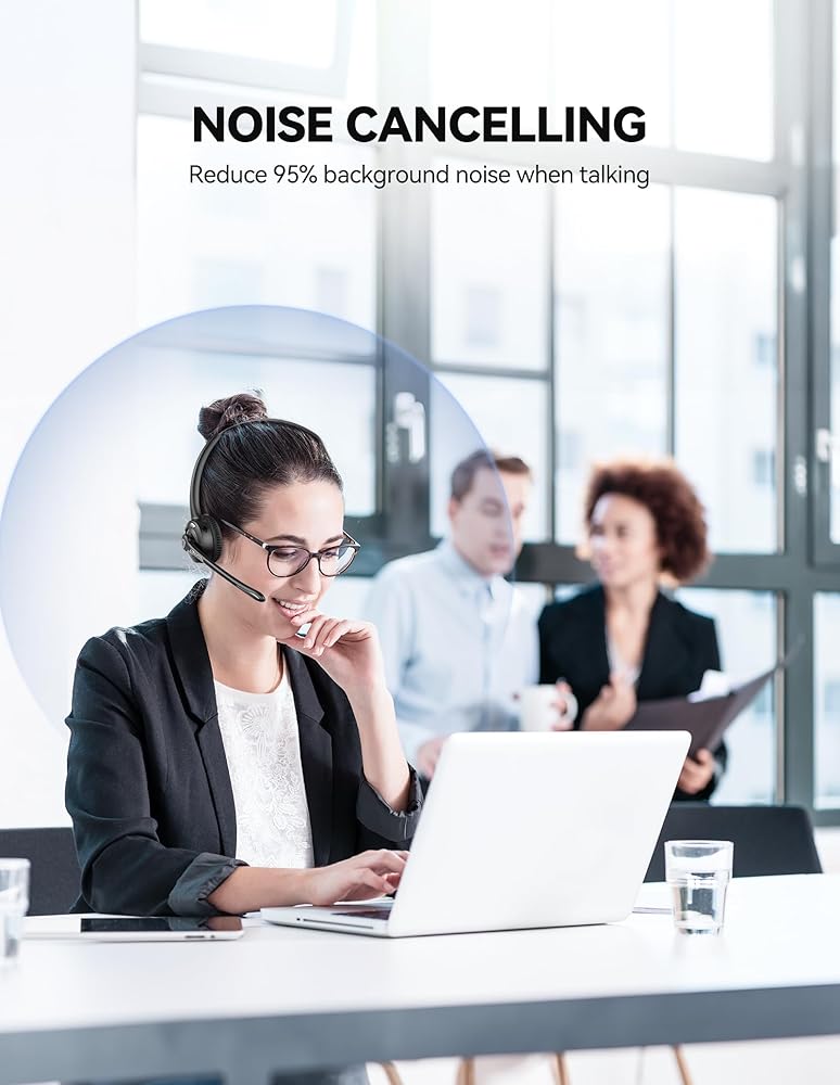 عمر بطارية طويل: توفر سماعة الرأس التي تعمل بتقنية البلوتوث ما يصل إلى 20 ساعة من وقت التحدث المستمر ووقت الاستعداد لمدة 200 ساعة مع شحن واحد لمدة ساعتين. حفظ عناء الشحن المتكرر. مثالي للمكتب، المنزل، العمل عن بعد، مركز الاتصال، VoIP، Skype، إلخ