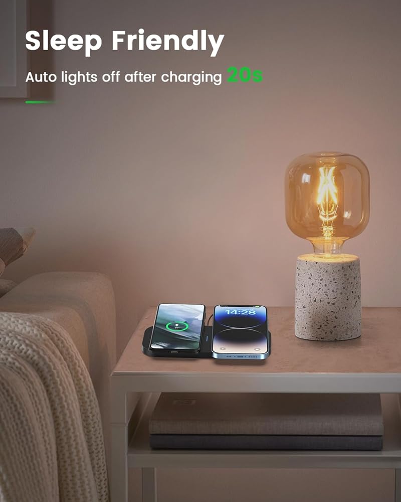 أعد شحن أجهزتك، وليس نومك: النوم ثمين، وكذلك راحة البال. يدرك الشاحن اللاسلكي الخاص بنا قيمة النوم الجيد أثناء الليل. سيتم إيقاف تشغيل ضوء مؤشر LED الأزرق تلقائيًا بعد 10 ثوانٍ. لا مزيد من الانحرافات المزعجة أو الأضواء الساطعة أثناء محاولتك الراحة. النوم بشكل سليم مع البقاء على اتصال!
