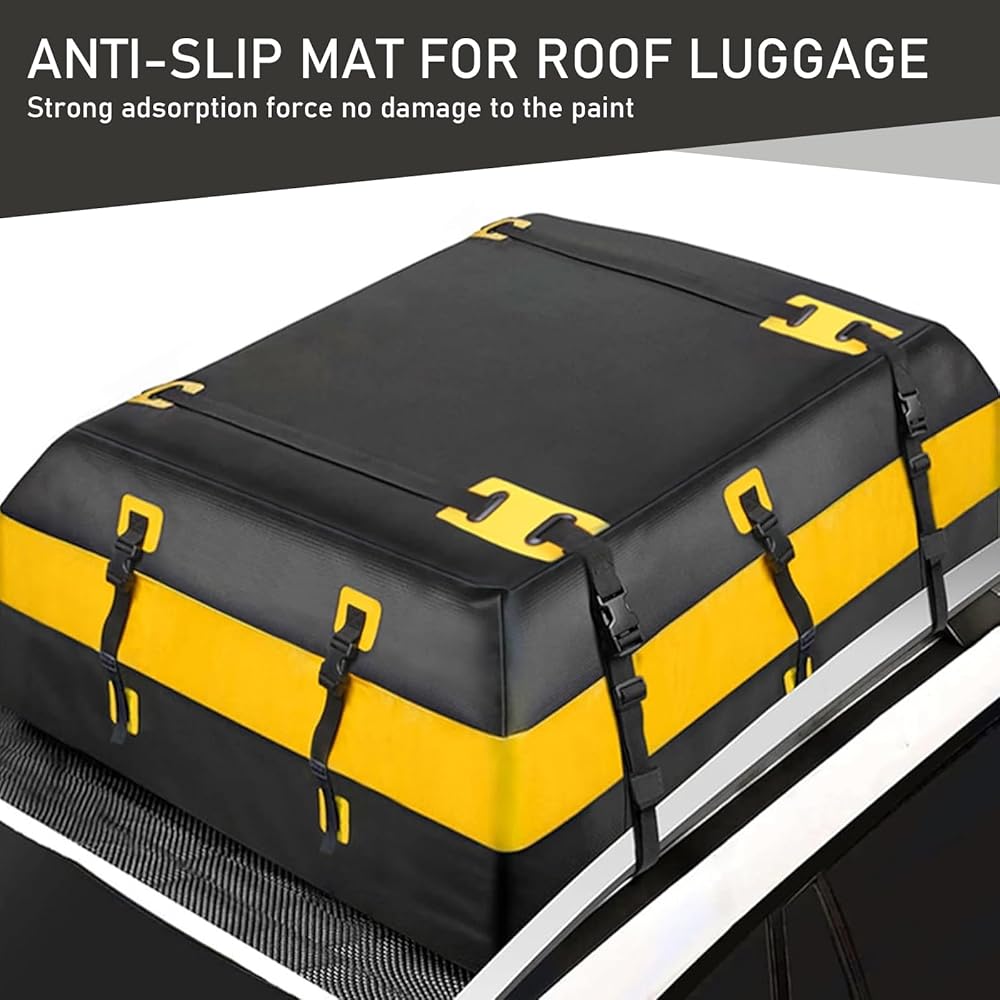 Crynod Pack-1 Car Roof Luggage Mat, 3.93 Ft x 3.28 Ft Multifunctional Trunk Floor Safety Non-slip Waterproof Pad, No Damage to Car Paint Foldable Cuttable Cargo Net Mat, Universal for Cars (Black)