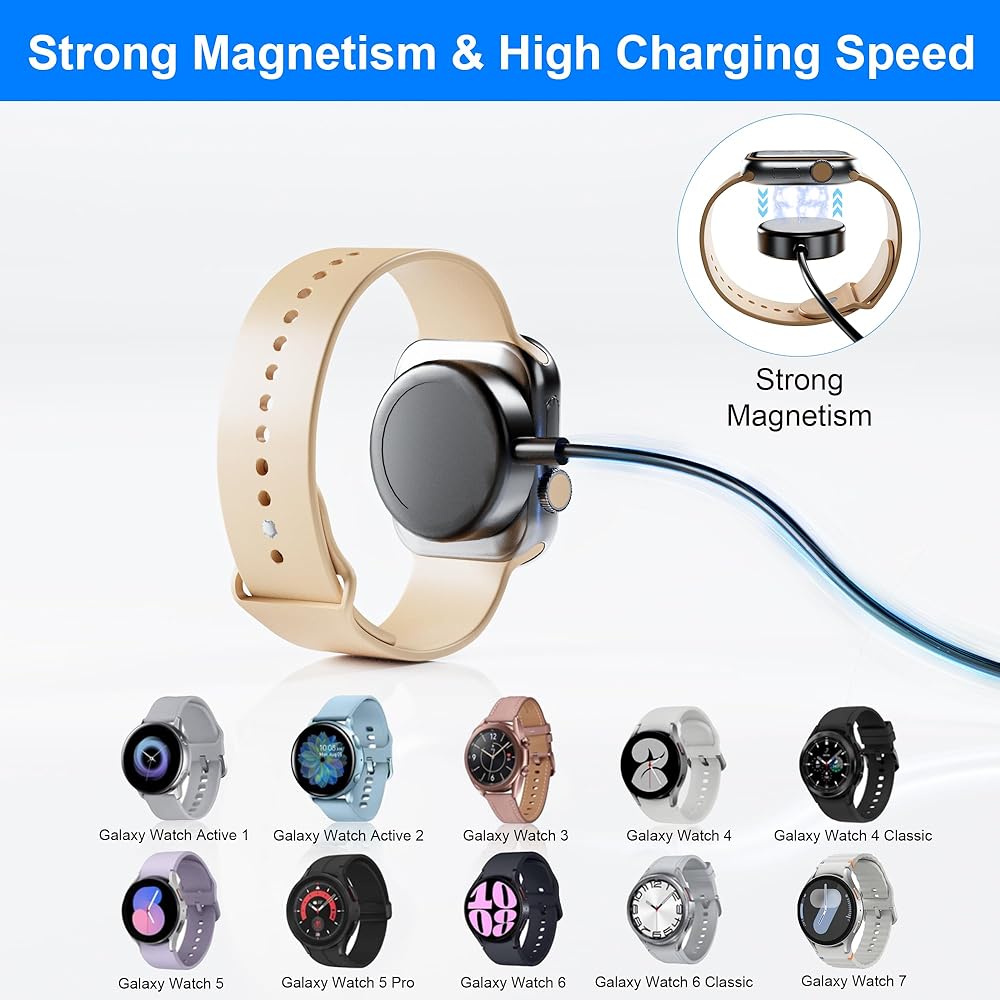 توافق واسع: شاحن Galaxy Watch Classic يدعم ساعة Galaxy Watch 7/Watch 6/ Watch 6 Classic/ Watch 5/ Watch 5 pro / Watch 4 / 4 Classic / Watch 3 / Active 2 / 1 مع جميع أحجام الشاشة (40 ملم، 41 ملم، 42 ملم، 44 مم، 45 مم، 46 مم)؛ يدعم منفذ USB-C هواتف Galaxy S24/S23/S22/S21/S20/S10/Note 20/10/9/8، وBuds، وiPad، وiPhone15، وMacbook Pro، وأجهزة الكمبيوتر المحمولة، ومعظم الأجهزة ذات النوع C؛ تم تصميم منفذ Lightning لهاتف iPhone 14/13/12/11/Pro/Max/XS/X/8؛ يدعم منفذ Micro USB معظم هواتف Android وسماعات البلوتوث وما إلى ذلك. (ملاحظة: فقط كابل من النوع C إلى النوع C يمكنه شحن iPad/الكمبيوتر المحمول)