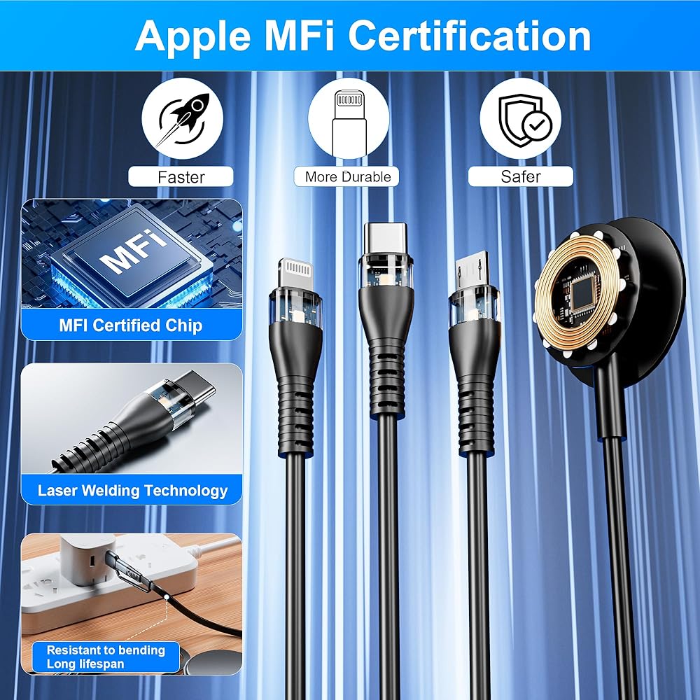 متين وآمن: شريحة حماية مدمجة من التيار الزائد والجهد الزائد والدائرة القصيرة والسخونة الزائدة لتوفر لك بيئة شحن آمنة، وسلك نحاسي عالي النقاء وقلب نحاسي سميك يتمتع بعمر خدمة أطول، واختبار الانحناء 40,000 مرة مرنة ودائمة