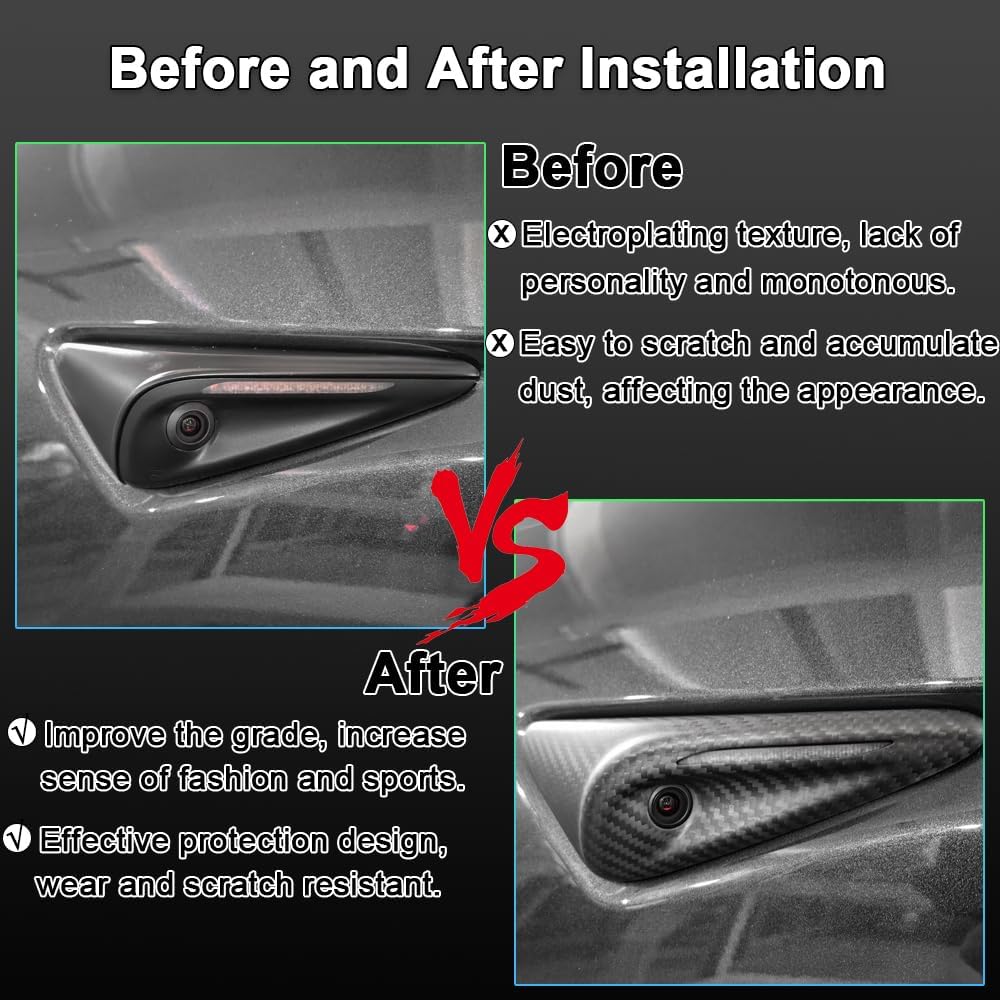الملاءمة: تم تصميم أغطية الكاميرا الجانبية هذه خصيصًا لسيارة 2024 Tesla Model 3 Highland؛ وهي متوفرة بلمسات نهائية لامعة وغير لامعة، مما يسمح لك باختيار النمط الذي يناسب سيارتك بشكل أفضل