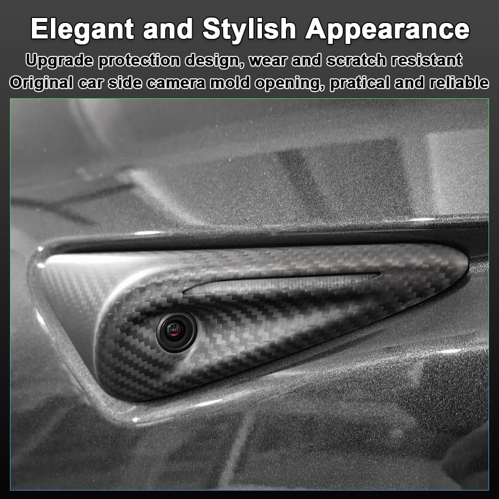 حماية وأناقة معززة: توفر مادة ألياف الكربون الحقيقية تأثيرًا مجسمًا ثلاثي الأبعاد، وخفيفة الوزن، وتوفر فخامة لا مثيل لها؛ إنه يحمي الكاميرات الجانبية بشكل فعال من التآكل مع تعزيز المظهر العام لسيارتك