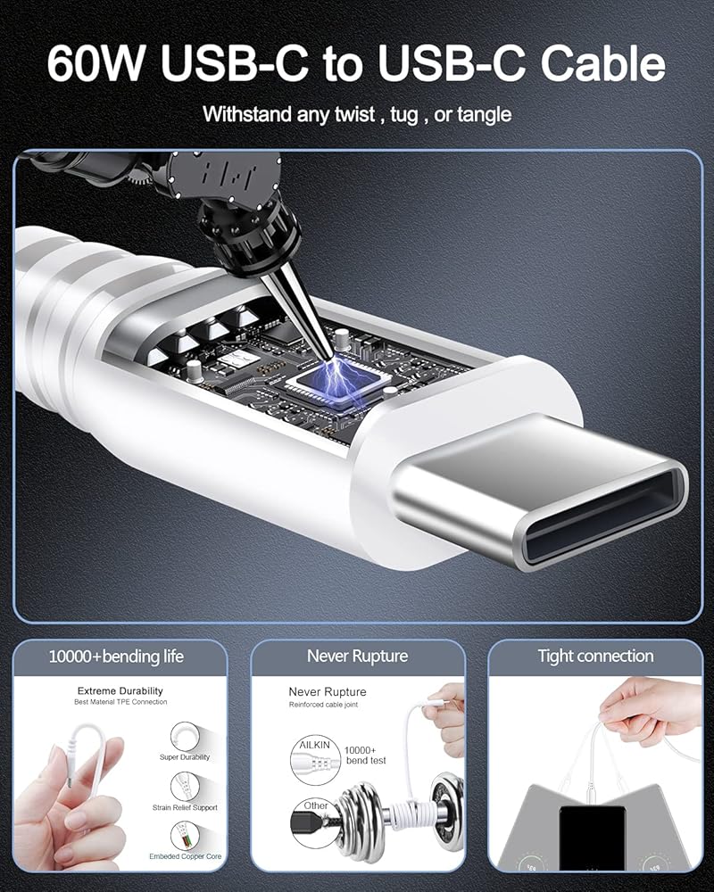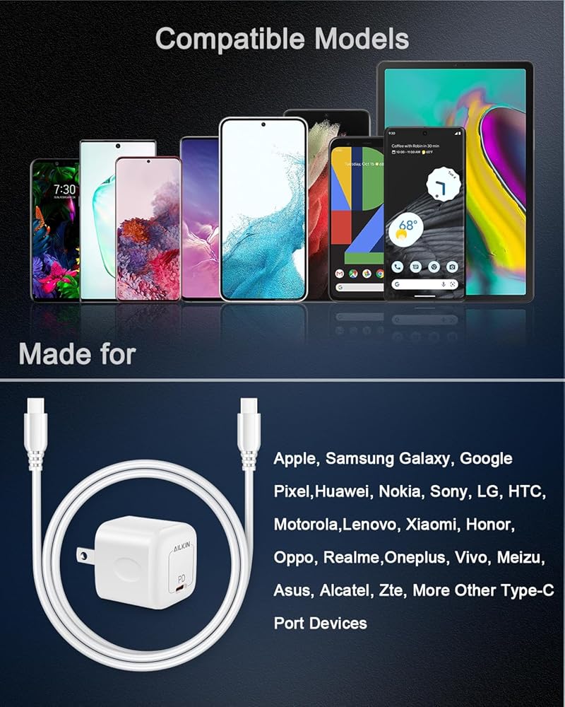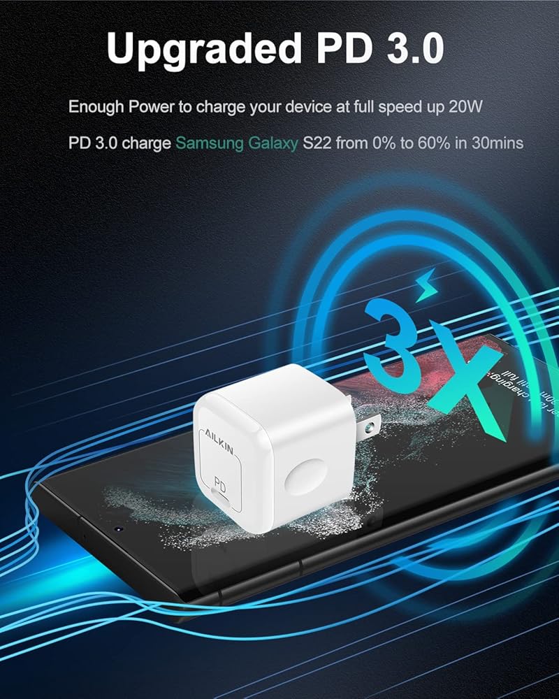 • ما الذي تحصل عليه - 1 × 20 وات PD شاحن حائط USB-C + 1 × 60 وات USB-C إلى كابل USB-C، بالإضافة إلى خدمة عملاء AILKIN الخالية من القلق مدى الحياة.