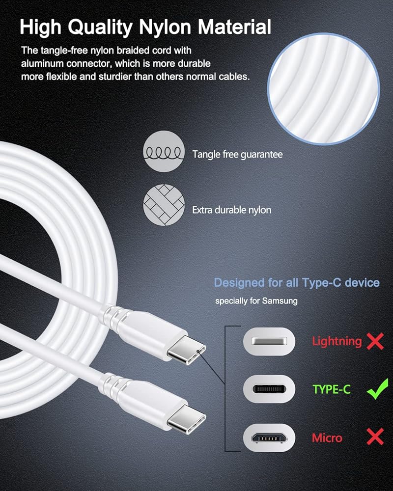 • منفذ PD C إلى C جديد - تم تصميم كابل USB-C إلى USB-C لشحن هواتف APPLE وANDROID بمنافذ من النوع C. آيفون 16/16 برو/16 برو ماكس/16 بلس/15 برو ماكس/15 برو/15 بلس، جوجل بيكسل 9 برو XL/9 برو/9/فولد، 8 برو، 8A، 8، 7A، 7 برو، 7، 6، 6 Pro، 5. موديلات Samsung Galaxy بما في ذلك Z Flip 6/5، Z Fold 6/5، S24/S24+/S24 Ultra، S23/S23+/S23 Ultra، S22/S22+/S22 Ultra، S21/S21 FE/S21+ /S21 Ultra، S20/S20 FE/S20+/S20 Ultra، A55/A35/A25/A15/A14، هواوي، موتورولا، نوكيا، إلخ.