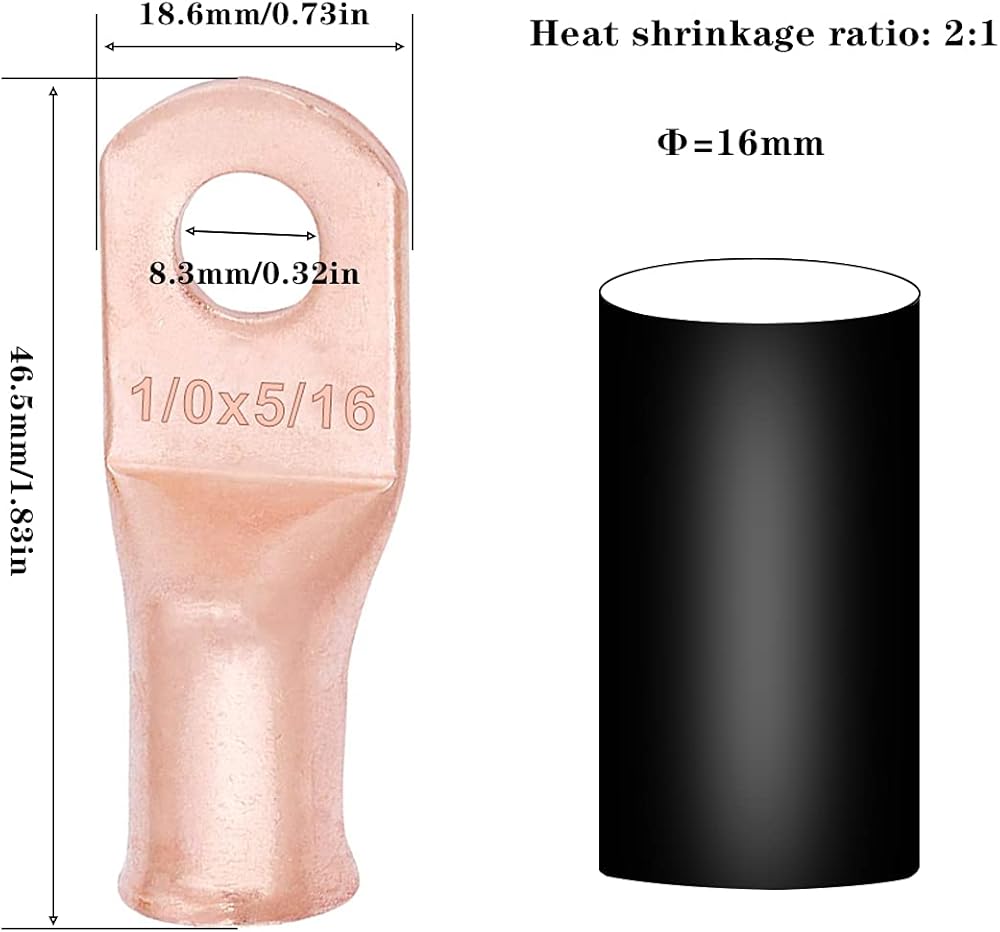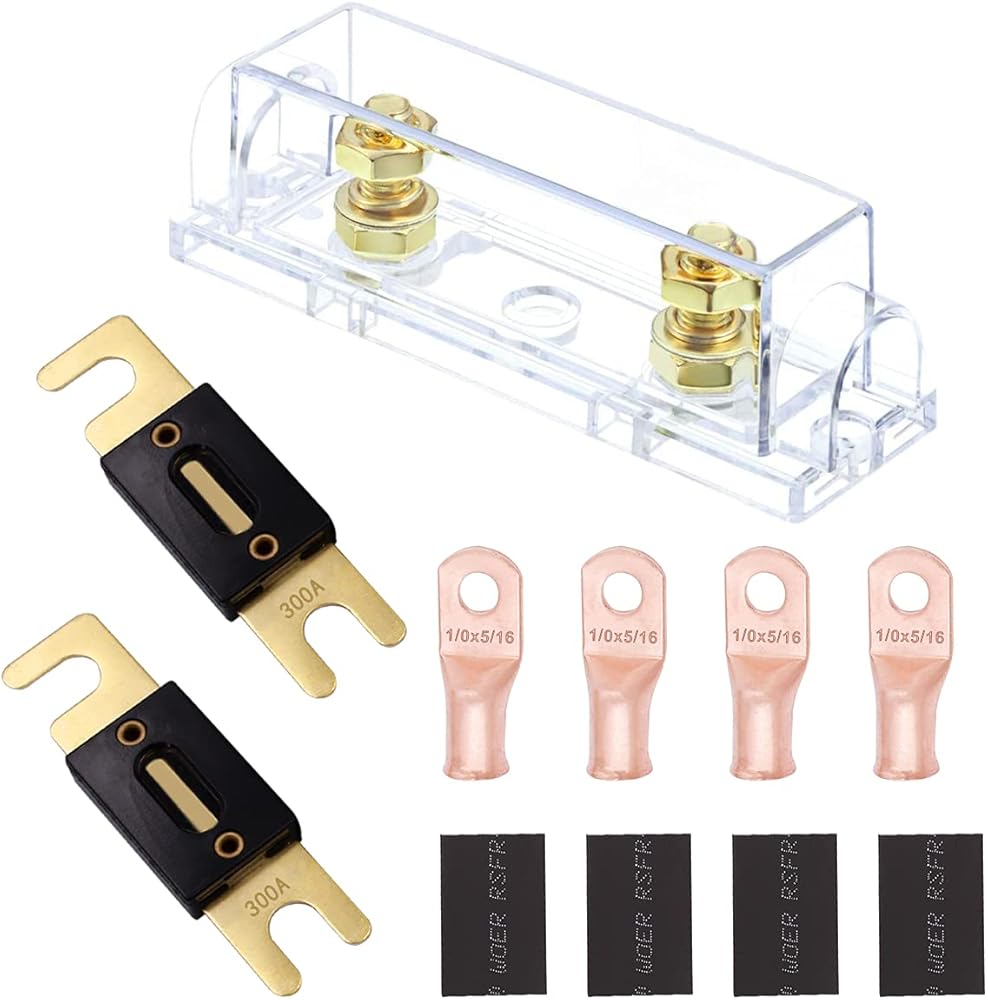 حامل فيوز Tnisesm ANL، قطعتان من الصمامات 300 أمبير، 4 قطع 1/0 AWG كابل طرفي طرفي 5/16 بوصة، 4 قطع أنبوب قابل للانكماش بالحرارة بقطر 14 مم متوافق مع مضخم صوت السيارة
