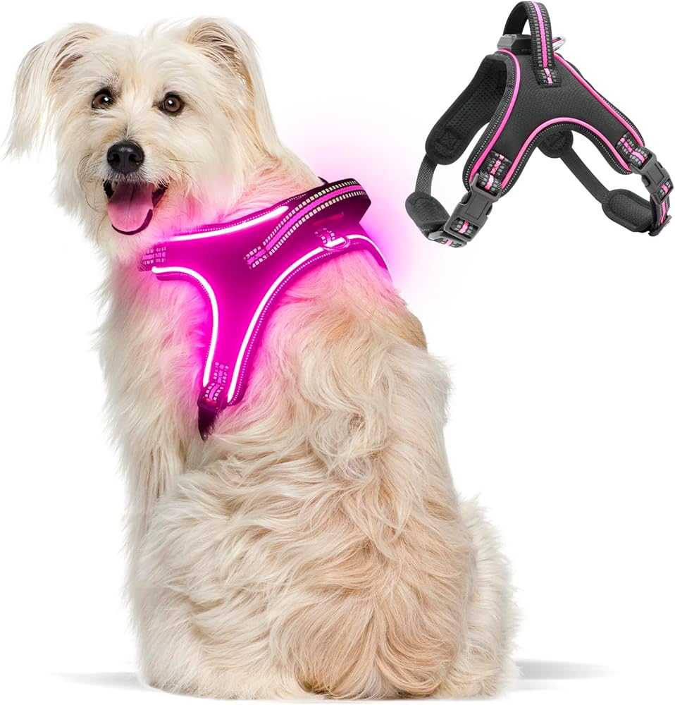 【لا يوجد سحب أو خنق】يمكن لسرج الكلاب المزود بمصباح LED من فلاشسين التحكم بسهولة في كلبك عن طريق ربط المقود بالمشبك الأمامي. عندما يسحب كلبك، سوف يستدير بدلاً من أن يسحبك للأمام. سرج الكلاب المضاد للسحب لا يسبب أي ضغط على رقبة الكلب، ويتم توزيع ضغط السحب بالتساوي على الجسم لمنع الاختناق.