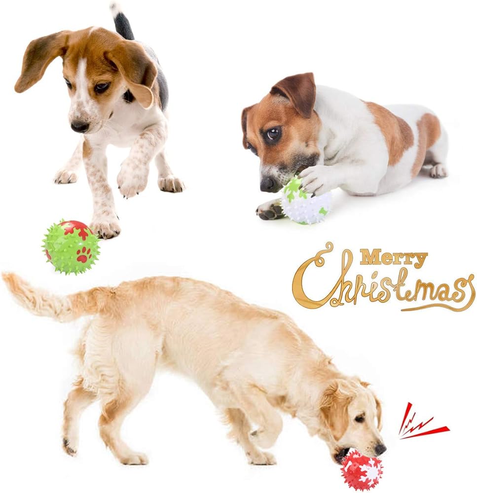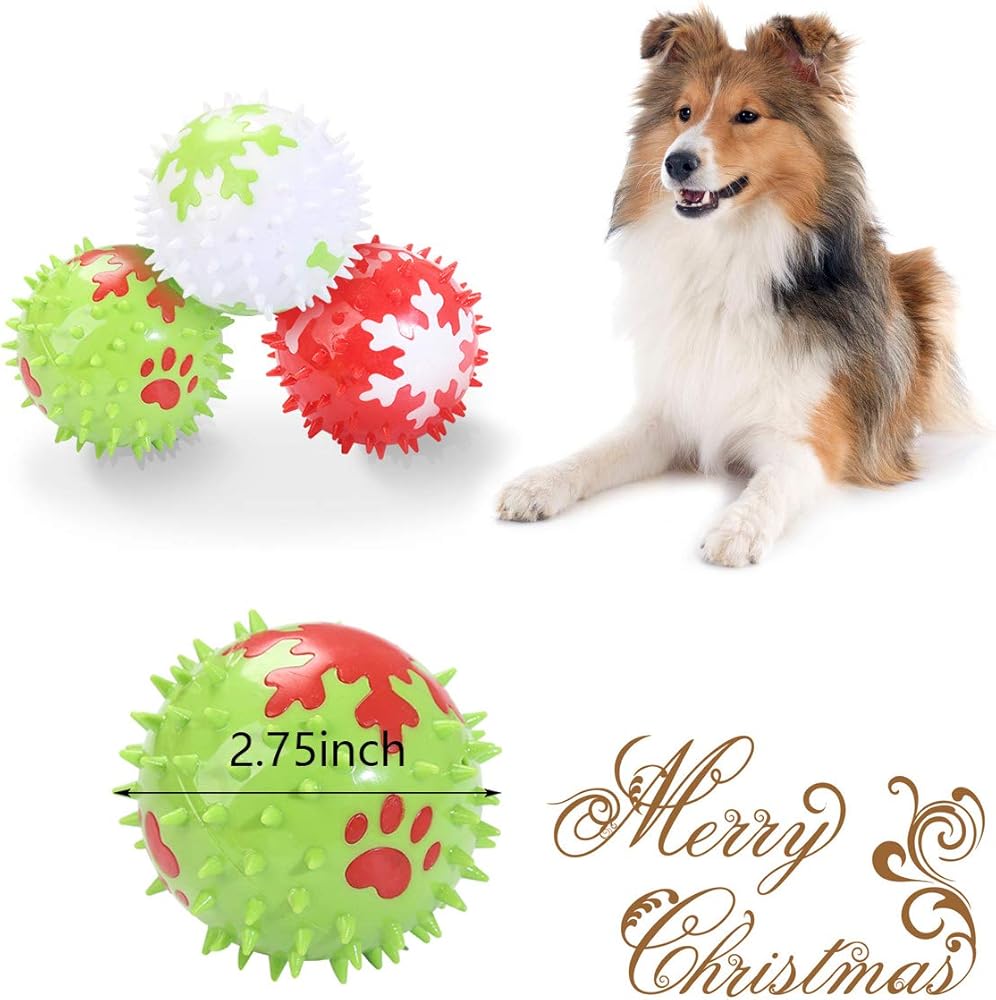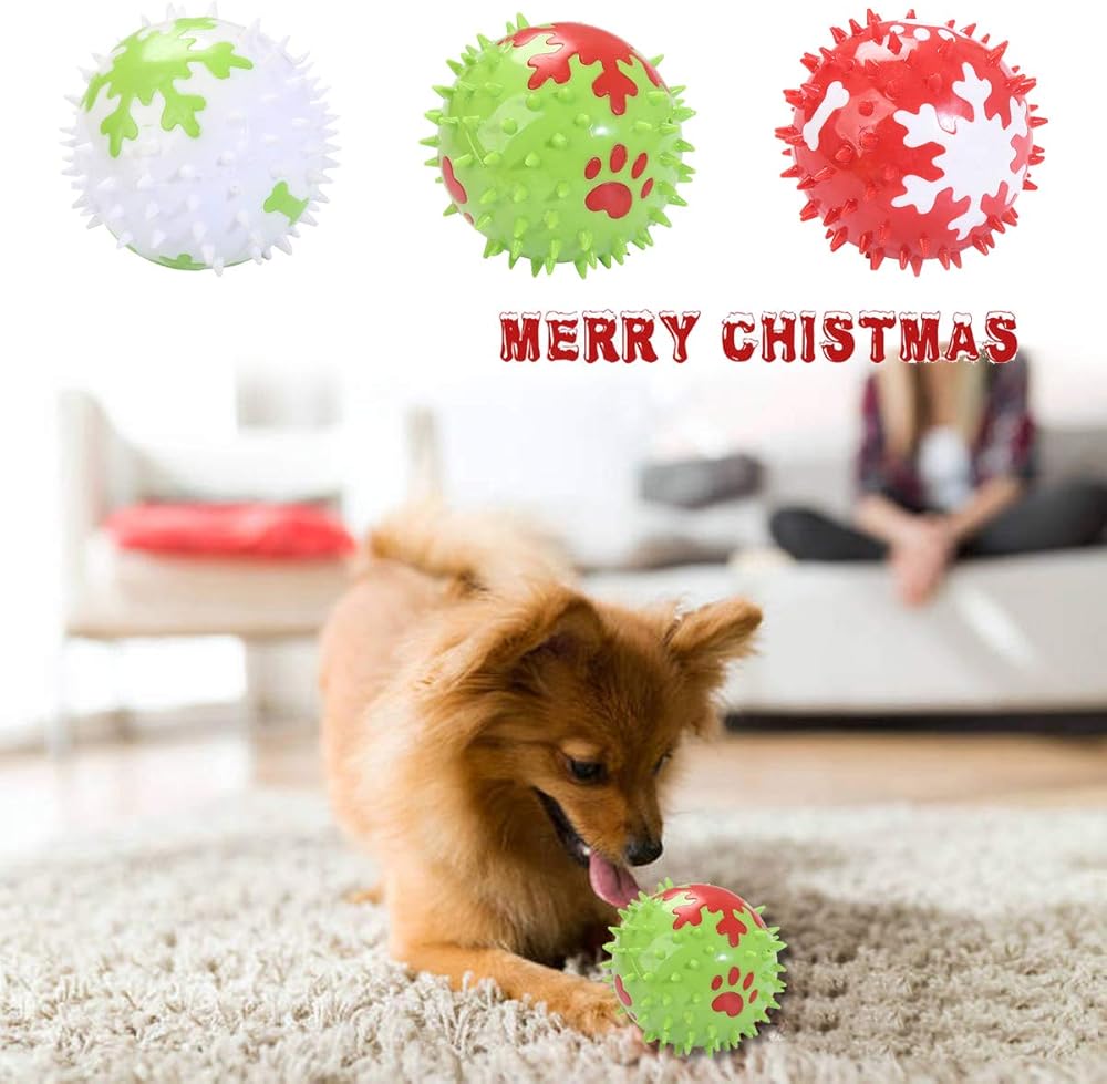 Christmas Squeaky Dog Toys, Durable TPR Dog Chew Funny Balls for Small Medium Large Dogs
