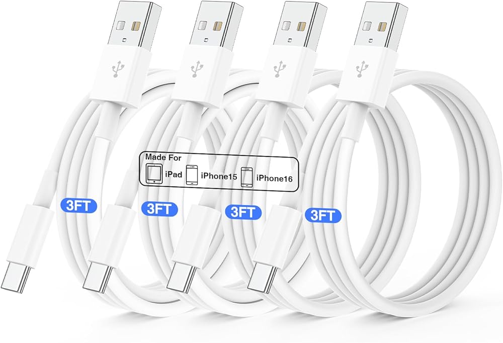 • 【قائمة العبوة】: تتضمن 4 كابلات USB A إلى USB C بطول 3 أقدام، مثالية لشحن أجهزتك بشكل مريح في المنزل أو المكتب أو أثناء التنقل