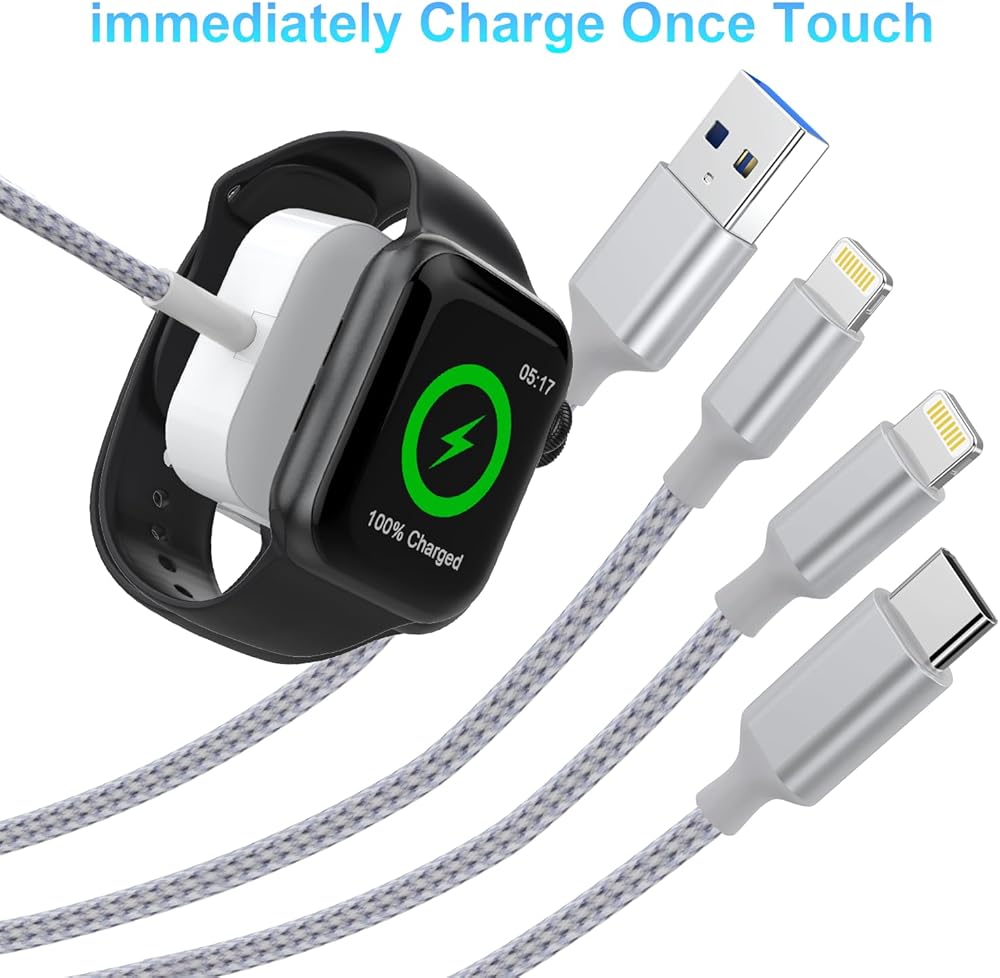 ⚡ كابل شحن عالمي: الكابل الخاص بنا متوافق مع Watch Series 8/7/6/SE/5/4/3/2/1/Watch Nike+/ Watch Hermès/ Watch Edition، iPhone 14/13/12/12Pro/11/ 11Pro/XS /XS Max/XR/8/8 Plus 7/7 Plus، سلسلة iPad، سلسلة Airpods. نوع C لهاتف Samsung Galaxy وLG وGoogle Pixel وNexus وHuawei وLumia وOne Plus. Micro USB لمعظم هواتف Android وPods وسماعات TWS والمزيد.