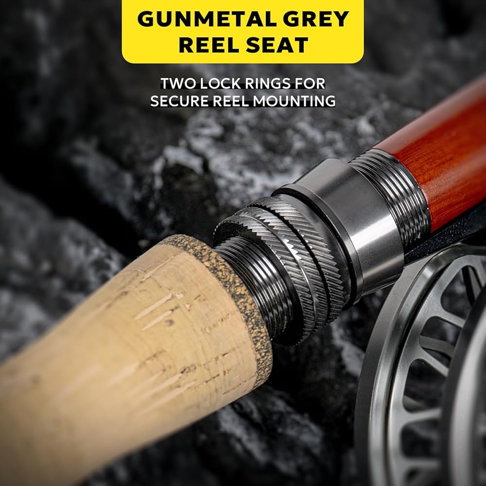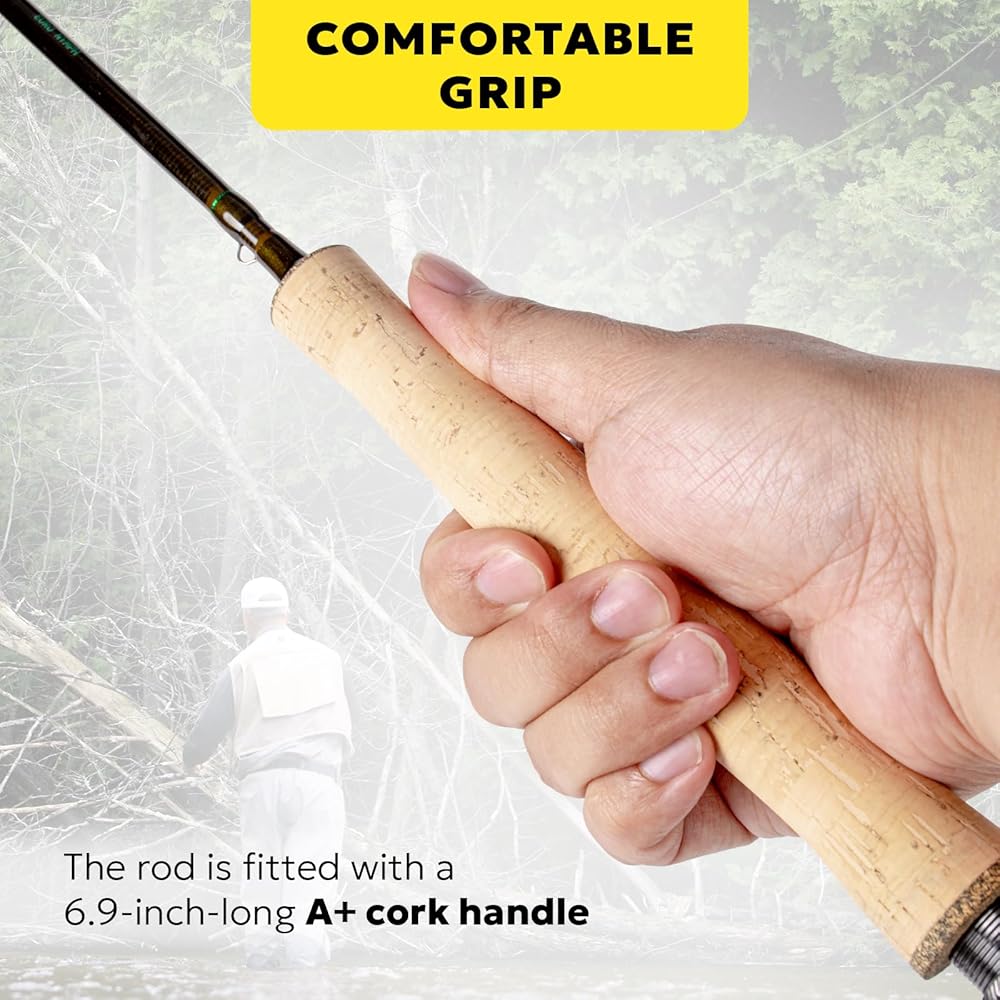 • مقبض الفلين المريح: تم تصميم قضبان الطيران SF Nymph خصيصًا لتقنيات الحوريات الحديثة. للحصول على قبضة مريحة، تم تجهيز القضيب بمقبض من الفلين A+ بطول 6.9 بوصة. يتم تضمين الخشب الصلب المغطى في مقعد بكرة قابل للقفل ومجهز بعقب قتال صغير لتوزيع الوزن بشكل أفضل. وحارس الخطاف على القضيب فارغ لعقد الذباب.