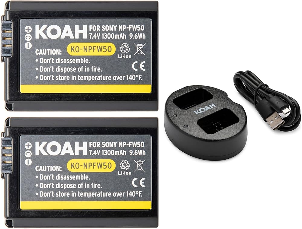 PRO Rechargeable 1300mAh Battery (2-Pack) and Dual Charger for Sony NP-FW50