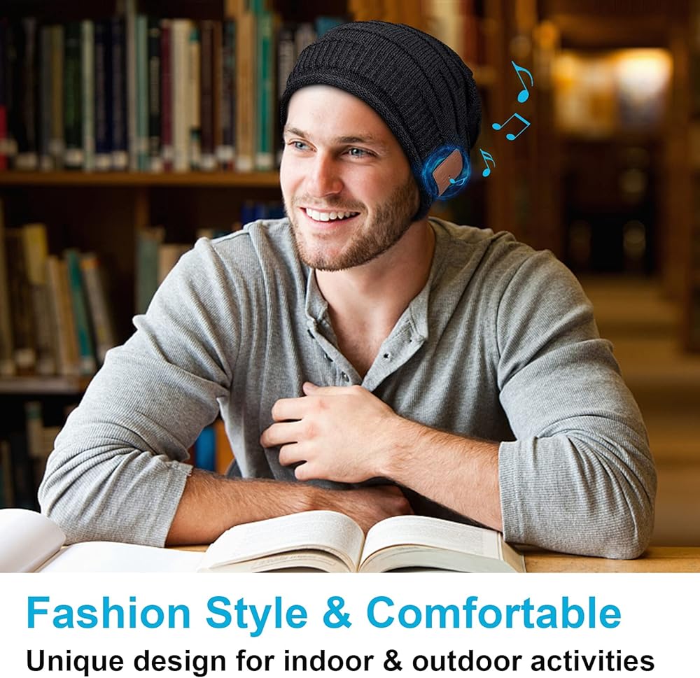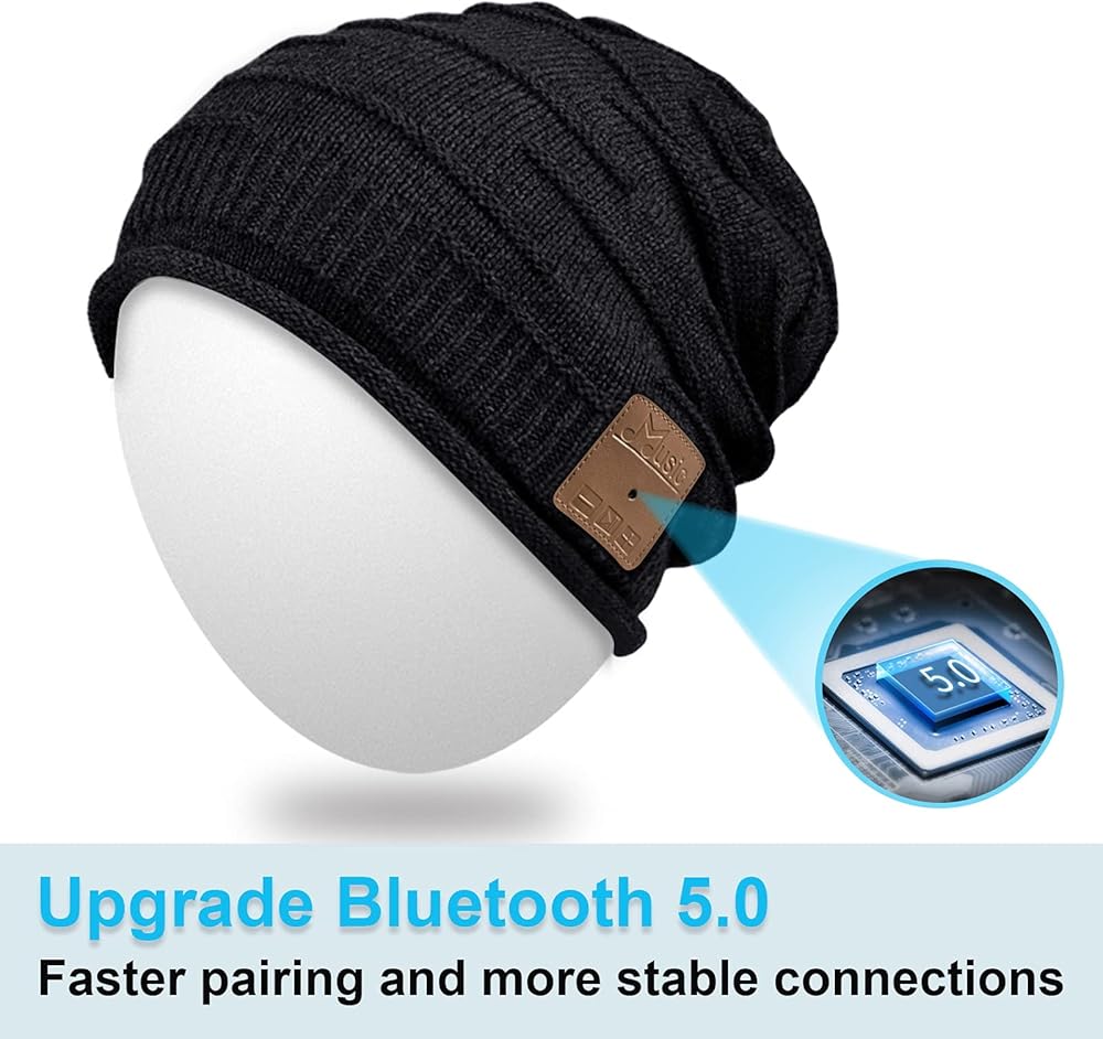 【مزيج من الأناقة والتقنية】قبعة صغيرة بلوتوث مصنوعة من الأكريليك الناعم بنسبة 100%، وتحافظ على دفء رأسك وتسمح لك بالاستماع إلى الموسيقى الخاصة بك دون الحاجة إلى ارتداء سماعات رأس إضافية. توفر لك قبعة البلوتوث جودة صوت رائعة وأناقة وراحة، مثالية للصالة الرياضية واللياقة البدنية والتمرين والرياضات الخارجية مثل الجري والتزلج والمشي لمسافات طويلة والتخييم ومشي الكلاب والسفر في العطلات...