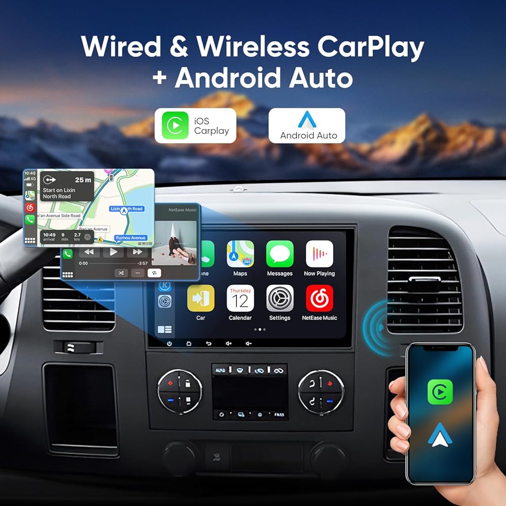 دعم Apple CarPlay، Android Auto، النسخ المتطابق: يدعم اتصالات CarPlay/Android Auto اللاسلكية والسلكية. ما عليك سوى توصيل هاتفك بالراديو عبر البلوتوث أو كابل USB 4/6 PIN، ويمكنك الوصول إلى معظم وظائف هاتفك في وضع CarPlay/Android Auto، بما في ذلك الرد على المكالمات وإرسال الرسائل النصية وتشغيل الموسيقى والتنقل في الخرائط. بالإضافة إلى ذلك، يدعم الراديو النسخ المتطابق السلكي واللاسلكي، مما يسمح بالتفاعل السلس بين هاتفك وراديو السيارة.