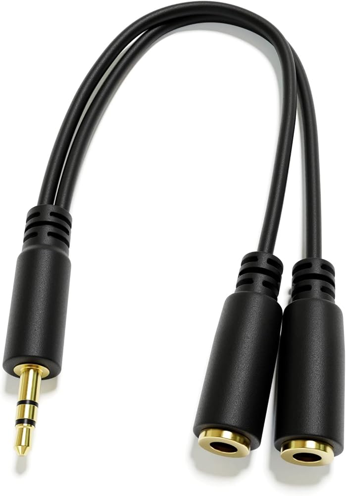 Connect two headphones or speakers to a single audio source with this handy mini jack splitter cable!