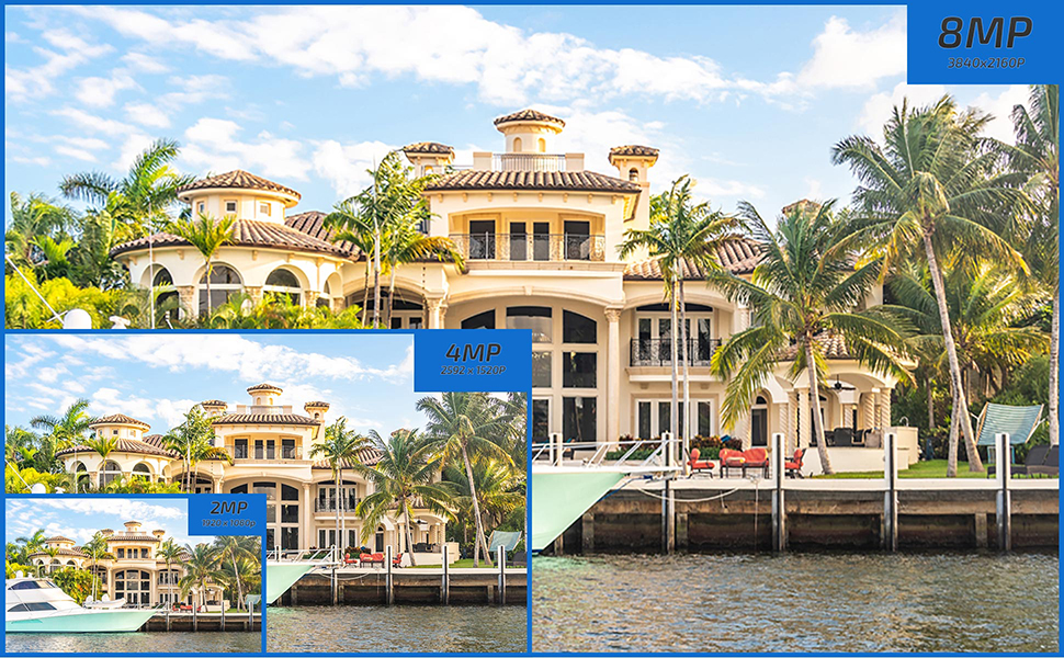 الحد الأقصى 8.0 ميجابكسل تسجيل حقيقي عالي الدقة 16 قناة H.265 4K NVR مع (16) 8 ميجابكسل 4K مقاومة للطقس POE H.265 IP كاميرات برجية (ميكروفون مدمج وعدسة زاوية واسعة 2.8 مم)