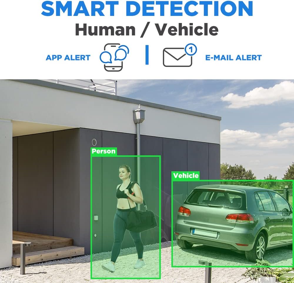اكتشاف الأشخاص والمركبات بالذكاء الاصطناعي - ستعرف على الفور ما إذا كان الشخص أو السيارة قد وصل إلى ممتلكاتك باستخدام تقنية اكتشاف الحركة الذكية المتقدمة بالذكاء الاصطناعي.