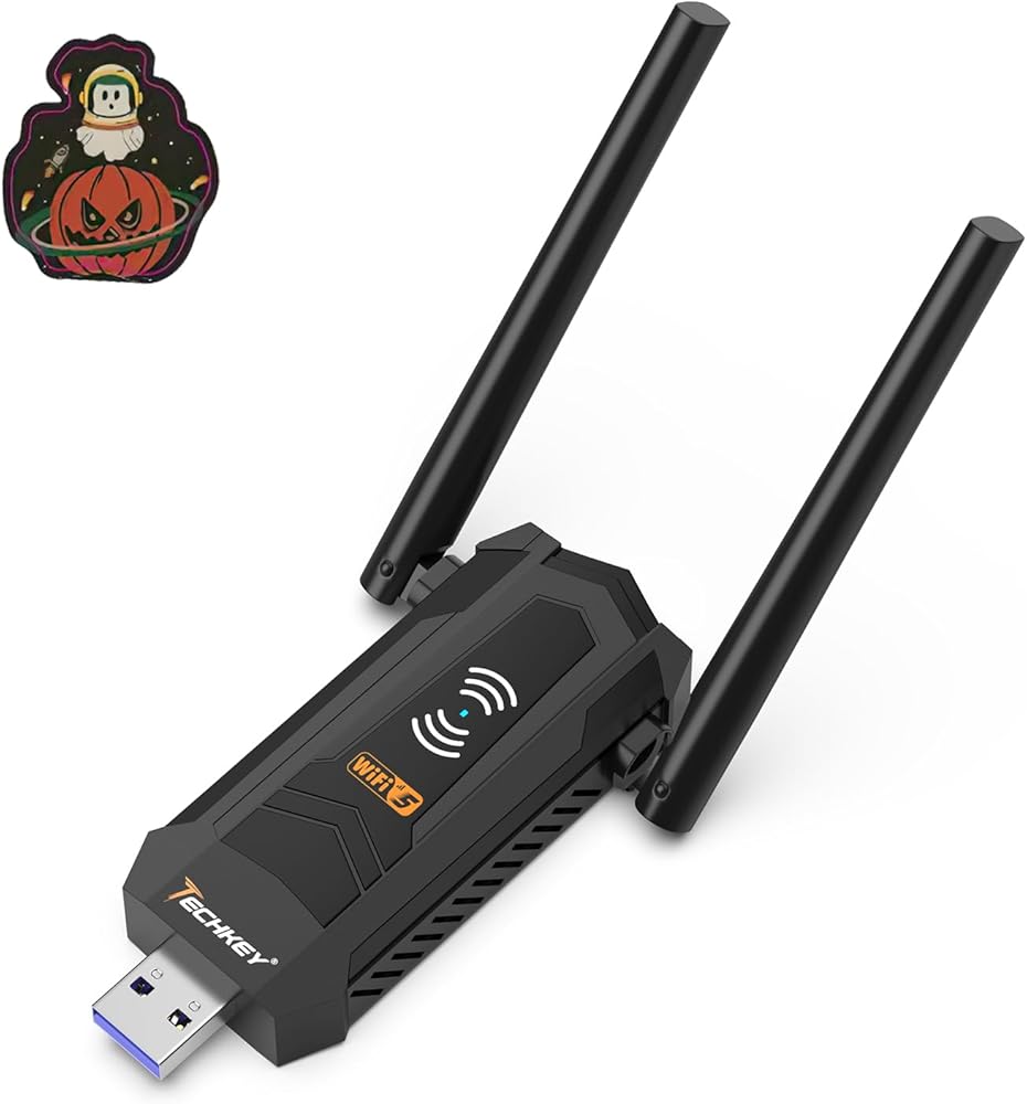 محول USB WiFi AC1300Mbps للكمبيوتر - Techkey Dual 22Dbi هوائيات WiFi لاسلكية عالية الكسب Dongle V18 محول الشبكة مع 2.4 جيجا هرتز/400 ميجا بت في الثانية 5 جيجا هرتز/867 ميجا بت في الثانية لأجهزة الكمبيوتر المحمول المكتبية Windows 11/10/8.1/8-Overcast in Kuwait