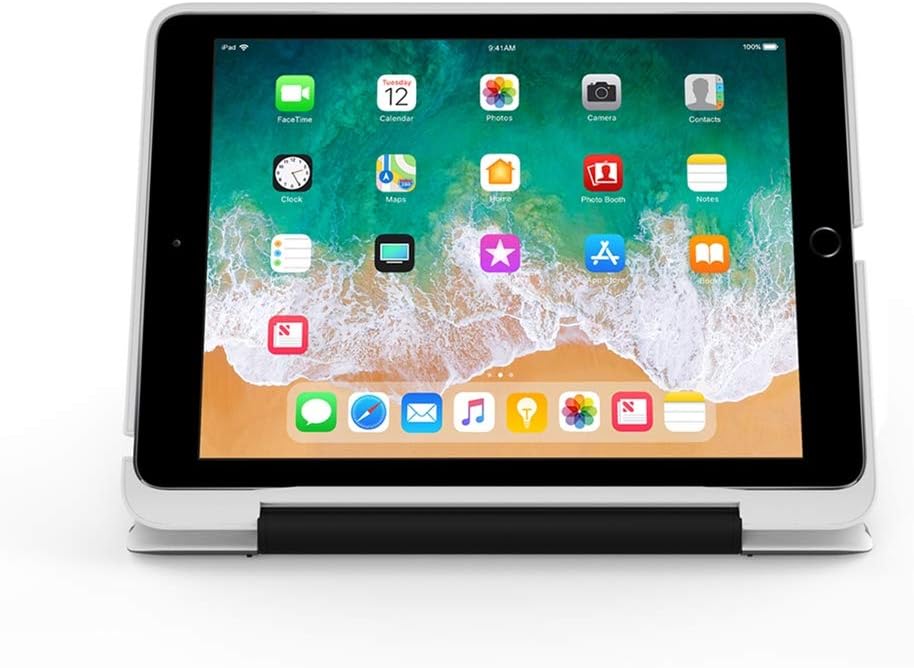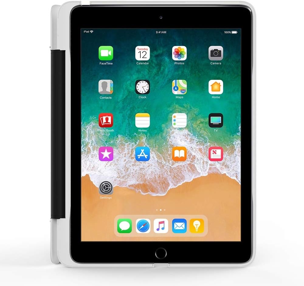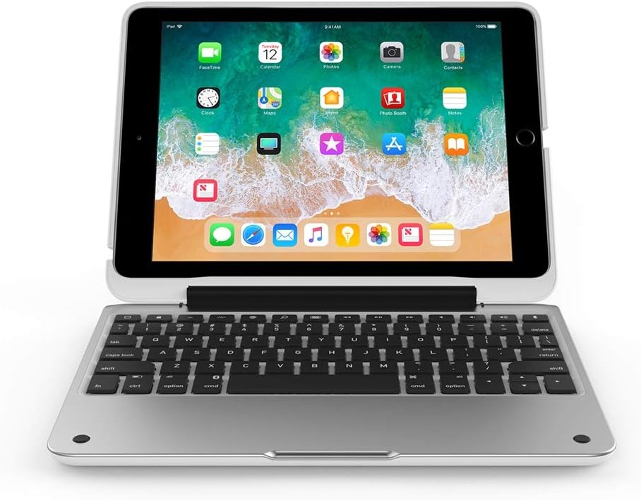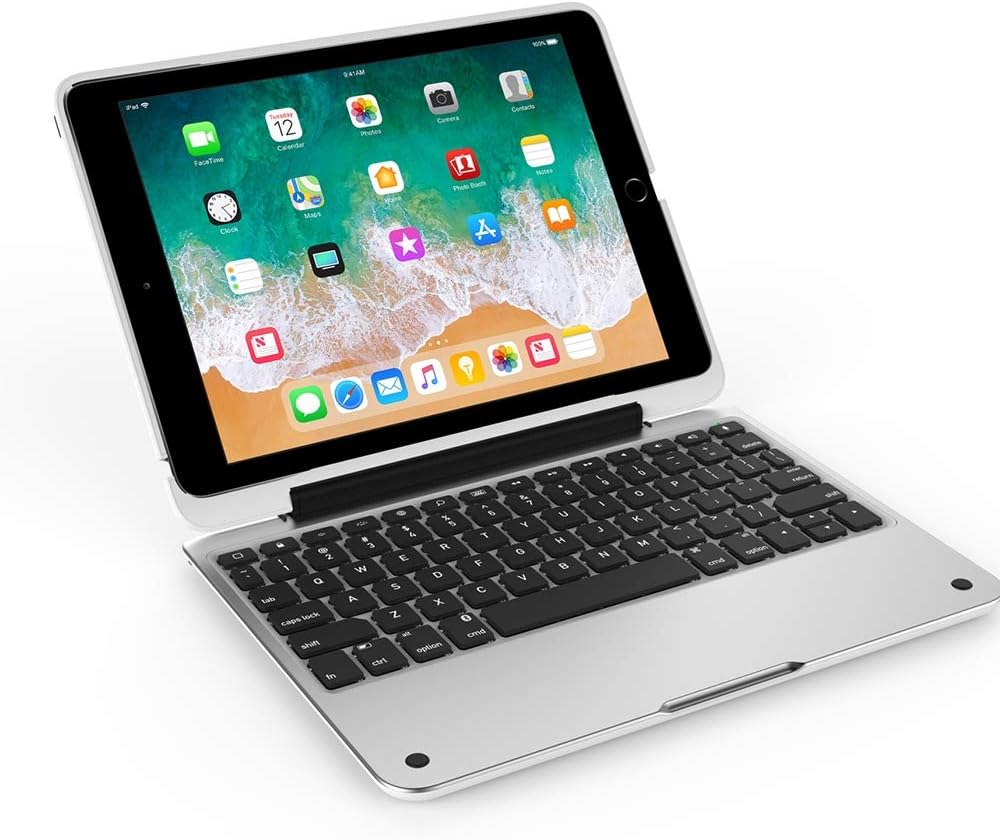 حافظة آيباد لجهاز آيباد 9.7 الجديد، آيباد 9.7 (الجيل الخامس) حافظة حافظة صلبة مضادة للصدمات مع لوحة مفاتيح بلوتوث لاسلكية تدور 360 درجة، غطاء نحيف للغاية - أبيض/فضي