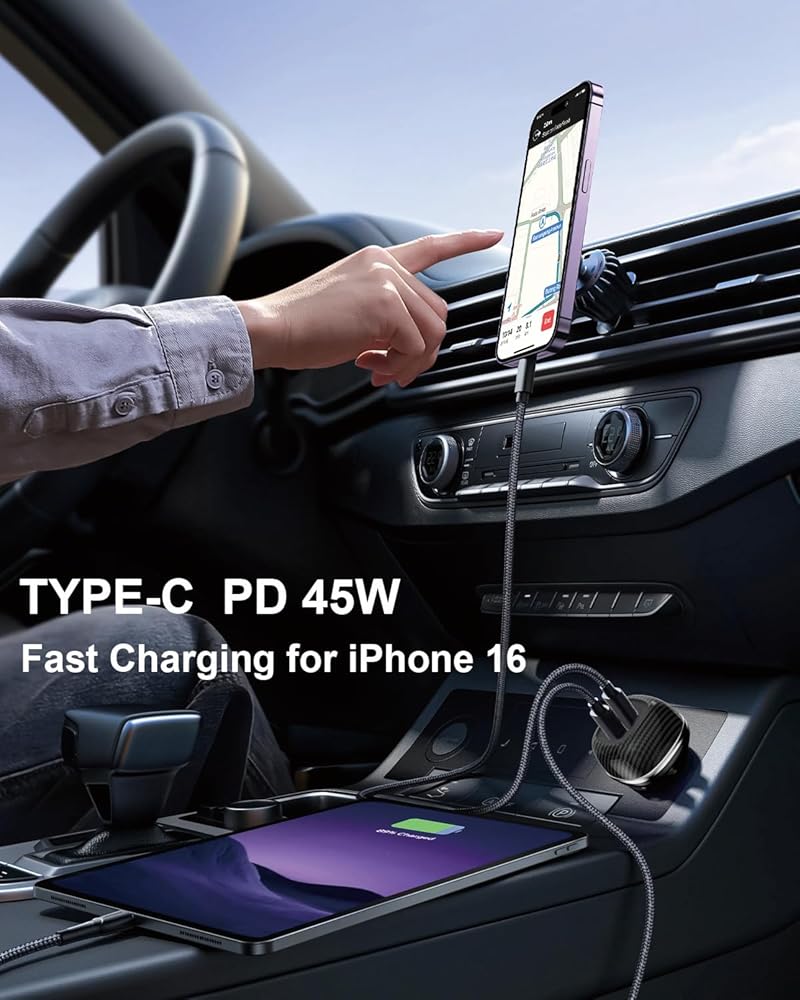 PD45W+QC45W SUPER FAST CHARGING:SUNDAREE 90W car charger adapter fast charging supporting PD 45W(usb-c port) and QC 45W(usb-a port) high output, Can fast charge all prevailing phones/iPad/tablet at the same time. Whether you're on a trip with family, friends, or colleagues, everyone can charge their devices with ease, enabling shared pleasure and convenience.