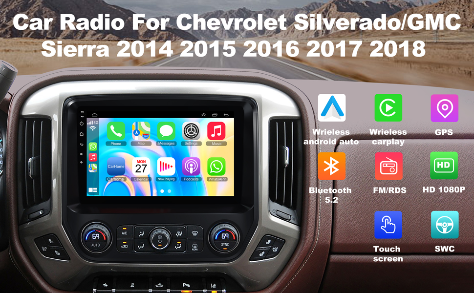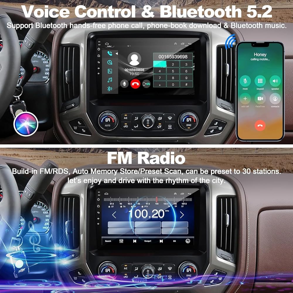 • 【سلكي/لاسلكي CarPlay & Android Auto】ستيريو سيارة Android 12 لسيارة 2014-2018 شيفروليه سيلفرادو وجي إم سي سييرا يدعم Apple CarPlay السلكي/اللاسلكي وAndroid Auto، مع اتصال سلكي أو لاسلكي من خلال البلوتوث، يمكنك الوصول بسهولة إلى تطبيقات هاتفك . يمكنك أيضًا تنشيط المساعد الصوتي Siri أو Google Assistant لتشغيل التطبيقات على هاتفك، واستخدام نظام تحديد المواقع العالمي (GPS) بسهولة، والمكالمات، والرسائل، والموسيقى، والمزيد من الوظائف مع الحفاظ على يديك حرتين للقيادة الآمنة.