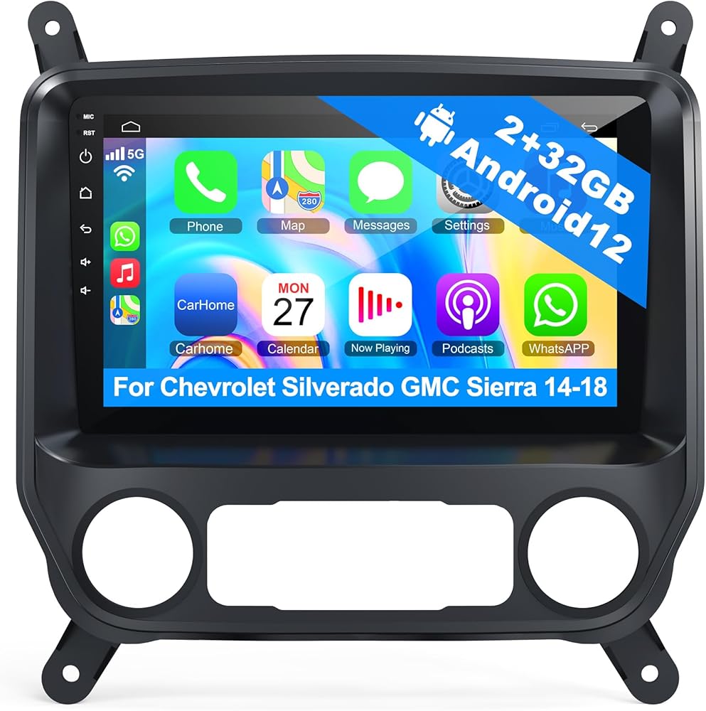 راديو سيارة Android 12 لسيارة 2014-2018 شيفروليه سيلفرادو وجي إم سي سييرا، محول الكون 10 بوصة IPS تعمل باللمس ستيريو السيارة مع Carplay اللاسلكي، Android Auto، GPS، بلوتوث، FM، 2+64 جيجابايت راديو Silverado