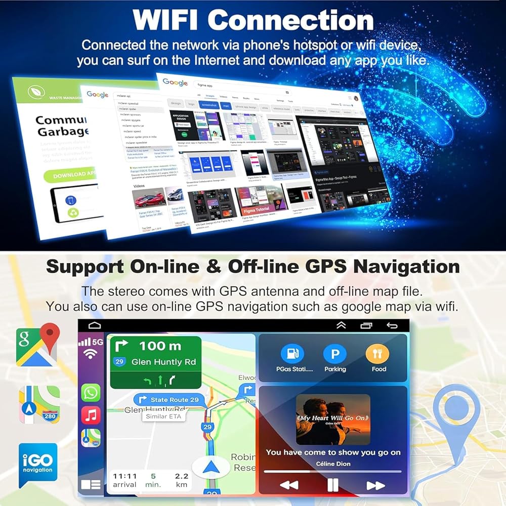 • 【نظام ملاحة GPS وكاميرا احتياطية عالية الدقة 】نظام ملاحة مزدوج يدعم الخرائط غير المتصلة بالإنترنت والخرائط عبر الإنترنت. يمكنك تنزيل خرائط مجانية حول العالم في Herewego للحصول على أحدث أحوال الطرق. تأتي مع كاميرا احتياطية عالية الدقة، تعرض صورة عالية الدقة عند ركن السيارة. (ملاحظة: لقد قمنا بتجهيز استريو السيارة هذا بأحدث كاميرا رؤية خلفية عالية الدقة، وقد لا يكون متوافقًا مع بعض الموديلات، وإذا لم تعمل الكاميرا، فيرجى الاتصال بنا، وسنرسل لك كاميرا بديلة مجانًا)