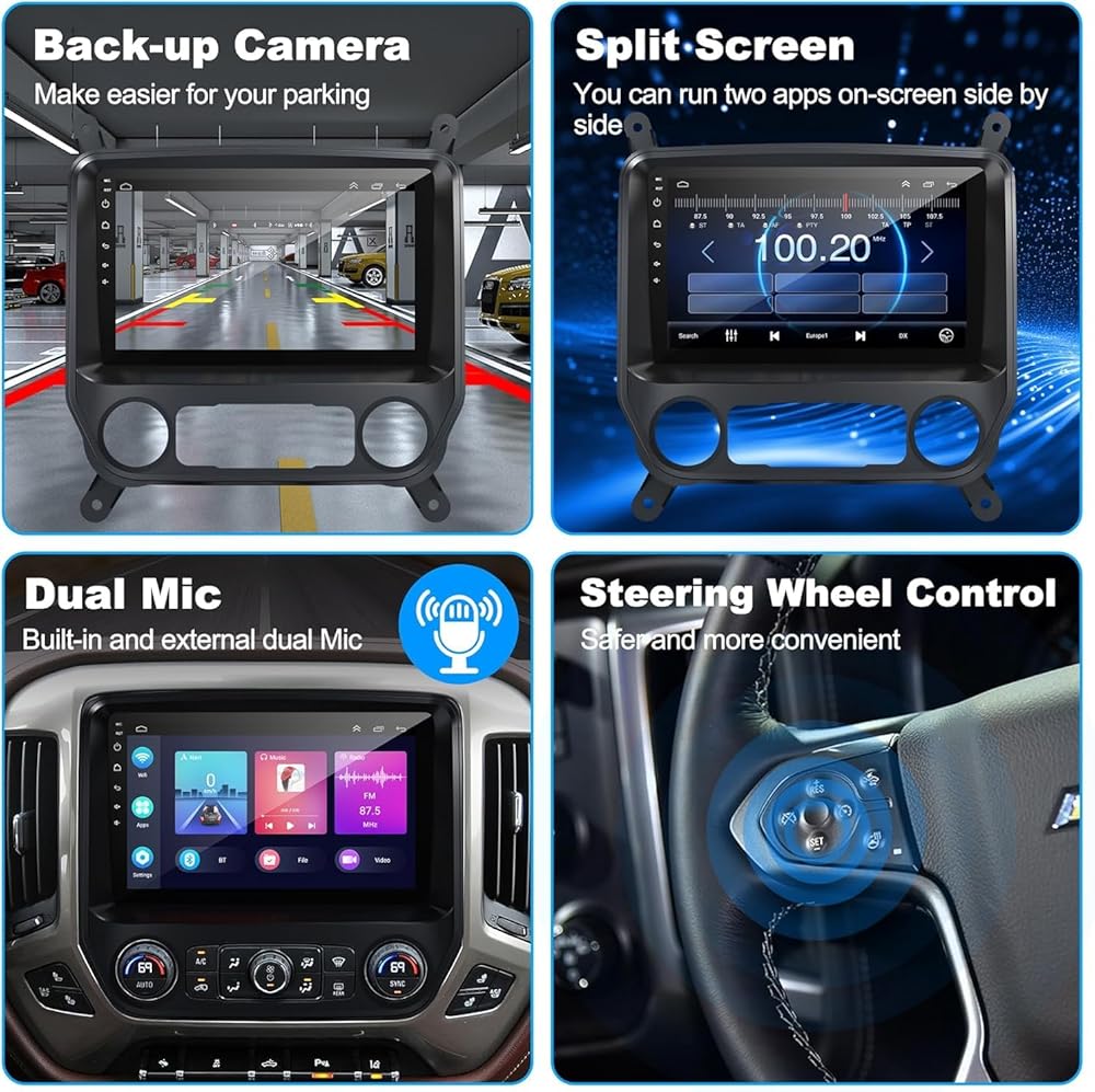 • 【وظائف قوية】ستيريو السيارة سيلفرادو مع شاشة لمس IPS مقاس 10 بوصات مع نظام Android 12، ومزود بوحدة معالجة مركزية رباعية النواة، وذاكرة وصول عشوائي سعتها 2 جيجابايت + ذاكرة تخزين داخلية سعة 32 جيجابايت، توفر تجربة مستخدم سلسة وسريعة الاستجابة. دعم CarPlay، Android Auto، نظام تحديد المواقع العالمي (GPS)، بلوتوث، راديو FM، إعدادات EQ، اتصال WiFi، كاميرا احتياطية، USB، مشغل موسيقى متعدد التنسيقات، مشغل فيديو 1080 بكسل، إخراج الفيديو والصوت، مدخل AUX للصوت والفيديو، ميكروفون خارجي، توجيه التحكم في العجلات، سمات واجهة المستخدم.
