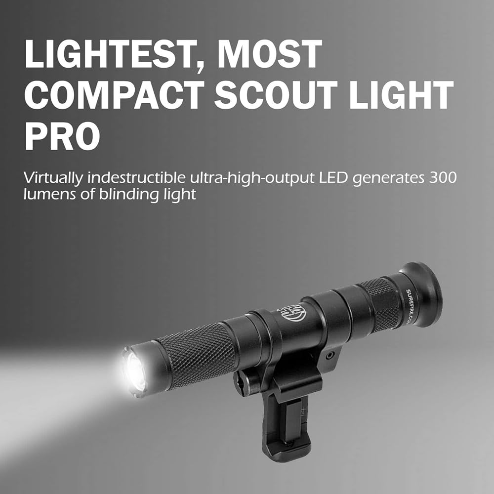 Sure Fire Micro Scout Light Pro M140A، ضوء تكتيكي LED منخفض المستوى بقدرة 300 لومن AAA، مقاوم للماء بدرجة IPX7، هيكل من الألومنيوم المؤكسد، مع قضبان Picatinny وM-LOK وبطاريات AAA وصندوق البطارية