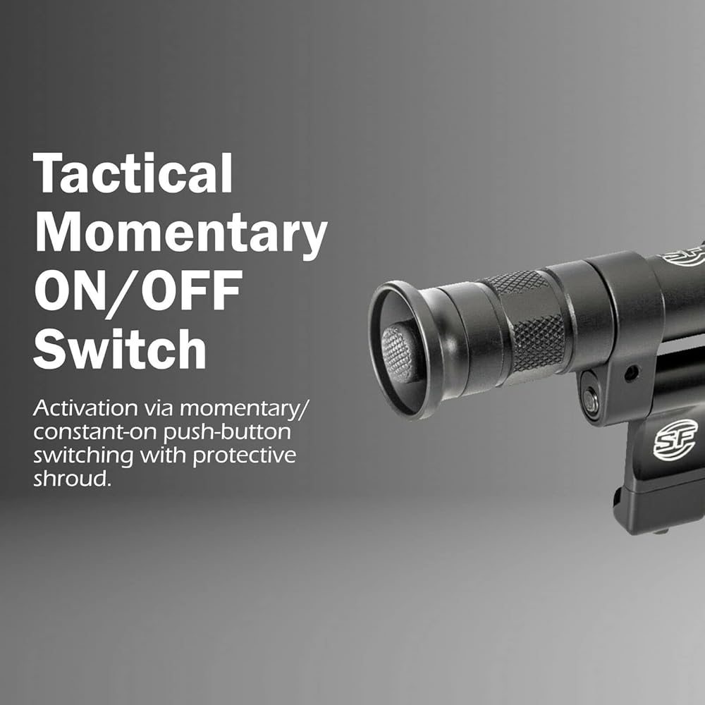 MOMENTARY TACTICAL SWITCH: Activation via momentary/constant-on push-button switching with protective shroud