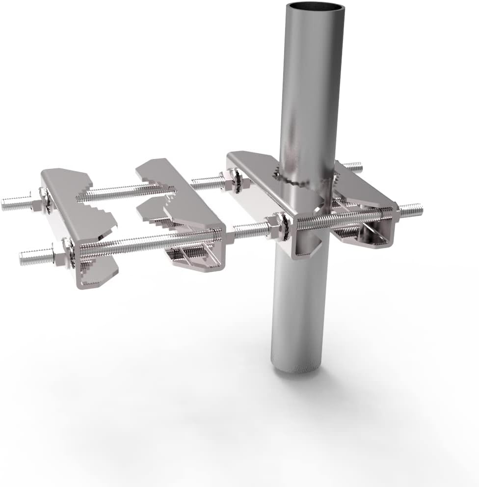 قوة تثبيت قوية: تستخدم مجموعة المشبك دعامات تثبيت على شكل حرف V للإمساك بالأنابيب والهوائيات بشكل آمن، مما يضمن ثباتًا ثابتًا حتى في الظروف العاصفة.