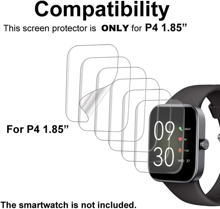 واقيات شاشة ناعمة متوافقة مع الساعة الذكية ASWEE P4 مقاس 1.85 بوصة، يجب التأكد من أن رقم طراز ساعتك هو نفسه قبل الشراء