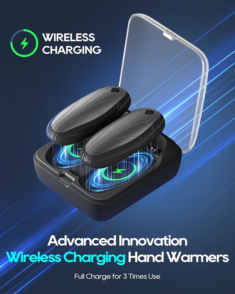 【شحن مغناطيسي لاسلكي متطور】: باستخدام تقنية الشحن المغناطيسي اللاسلكي المبتكرة، قل وداعًا للأسلاك المتشابكة! لا تحتاج أجهزة تدفئة اليد المحمولة لدينا إلى أي سلك، ويمكن الشحن الفوري في علبة الشحن، ويمكن لشحن كامل واحد إعادة شحن أجهزة تدفئة اليد 2-3 مرات، مما يضمن ما يصل إلى 2-3 أيام من الدفء في المغامرات الخارجية أو الطقس البارد دون القلق من عمر البطارية. في الطقس البارد.