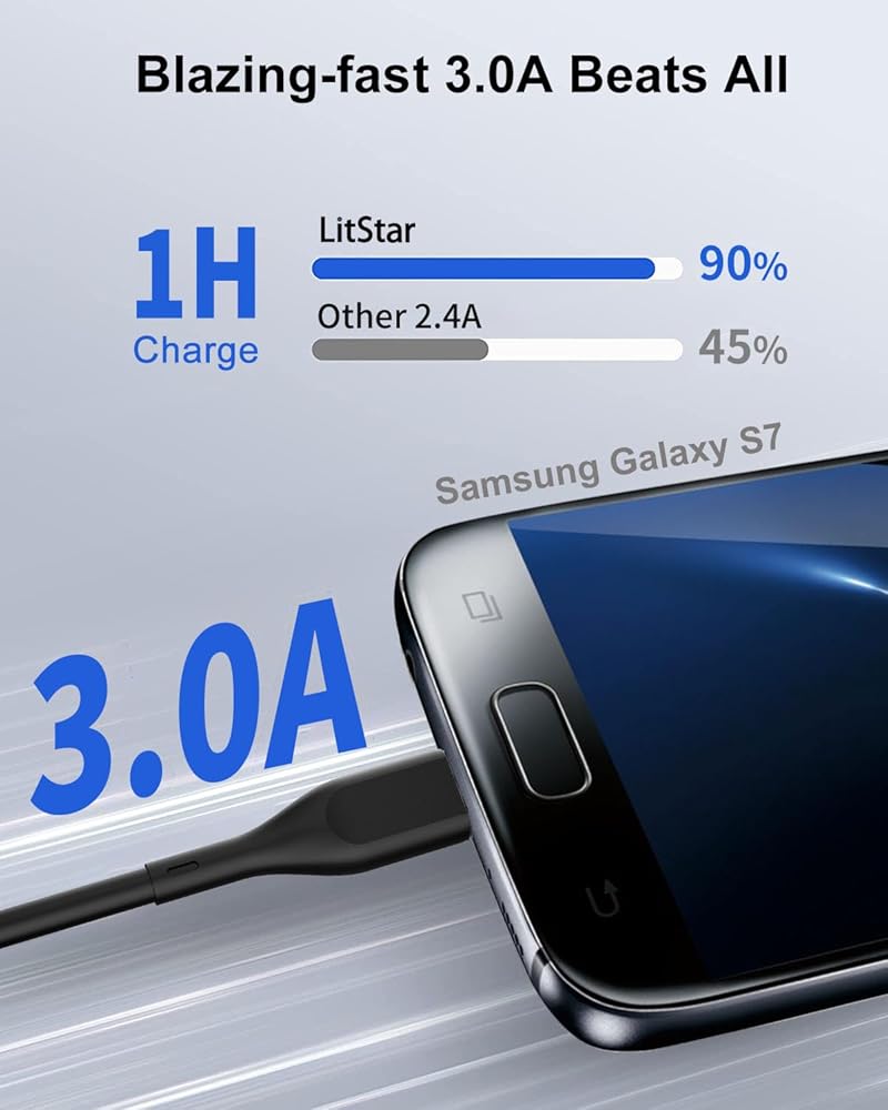 يدعم الكابل الصغير تقنية الشحن السريع، والتي يمكنها شحن الجهاز بشكل أسرع، مما يوفر وقت المستخدم وتكاليف الشحن