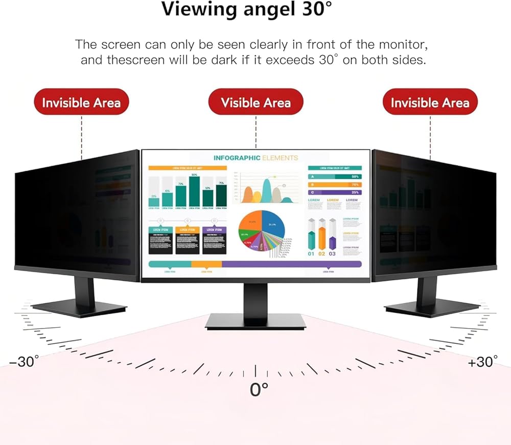 Frontal Clarity: Straight ahead, within a 60-degree range, the micro-louvers in the filter allow a perfectly clear view of your screen.