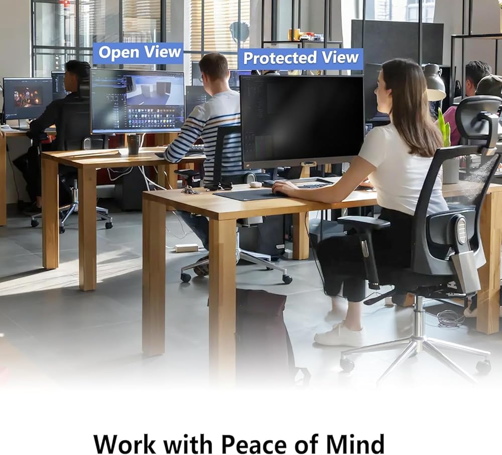 Pozlle Computer Privacy Screen Filters are compatible with laptops, notebooks, desktops, and all-in-one computers.Ideal for bustling offices, financial institutions, healthcare providers, or any environment where information privacy is paramount, these filters are a straightforward solution for safeguarding your screen's content from lateral onlookers.