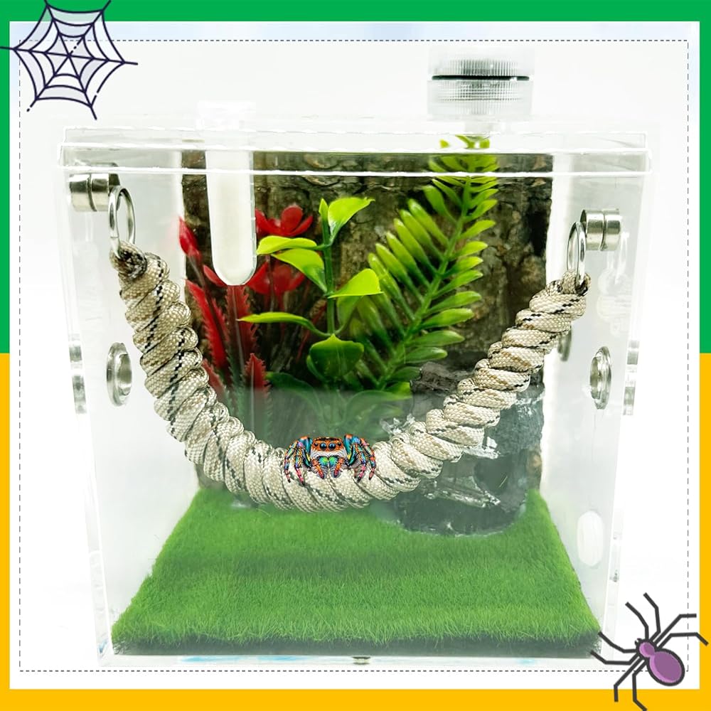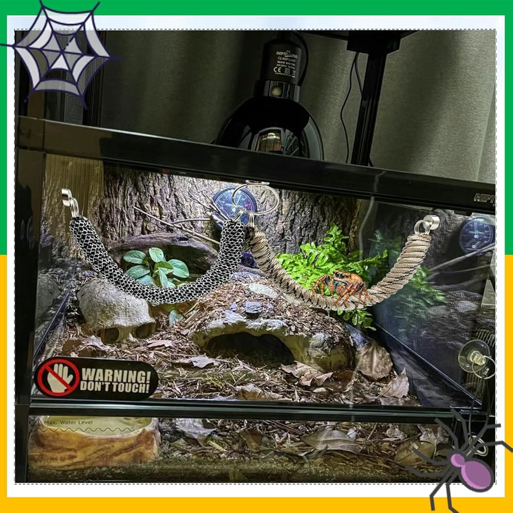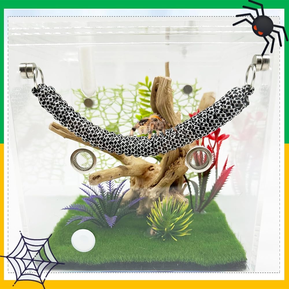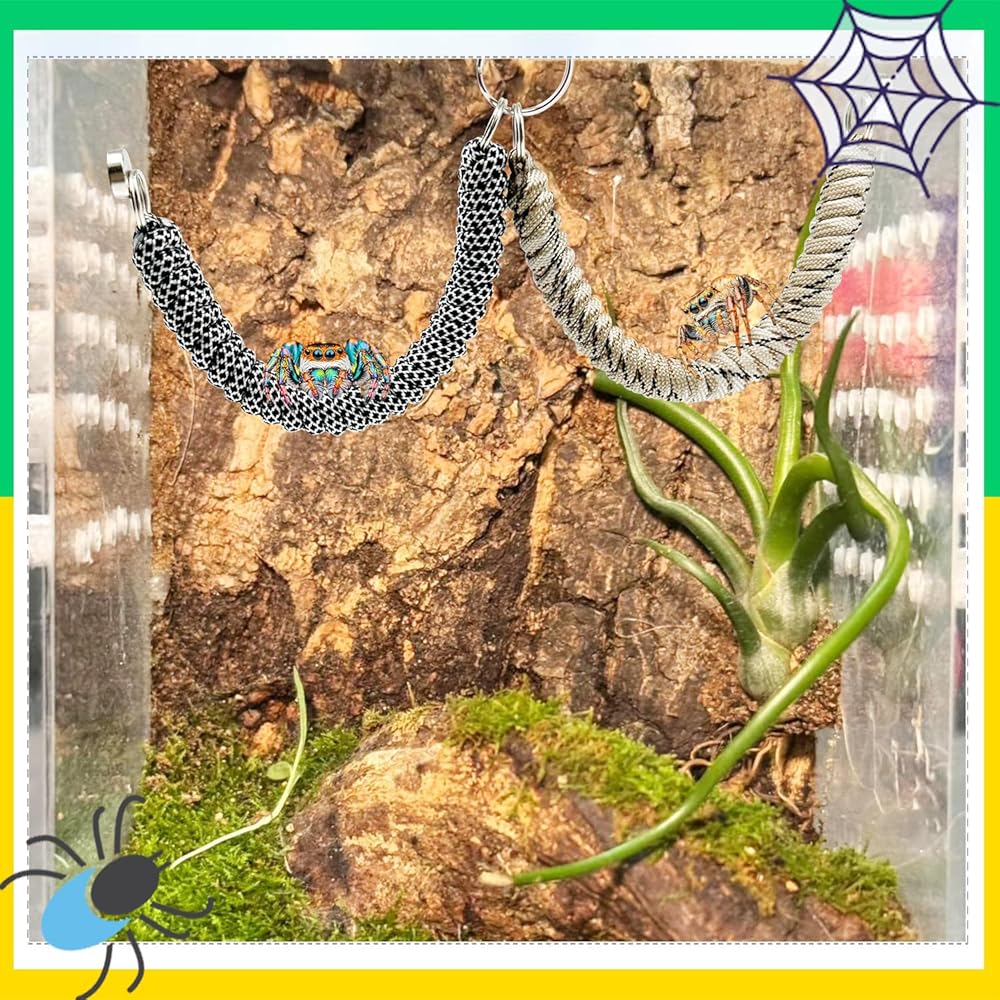 عبوة من قطعتين من إكسسوارات عنكبوت القفز، جسر حبل مع مغناطيس لعناكب القفز، حبل تسلق مصنوع يدويًا، زخرفة حاوية عنكبوت قفز (غير متضمنة في حوض عنكبوت القفز)