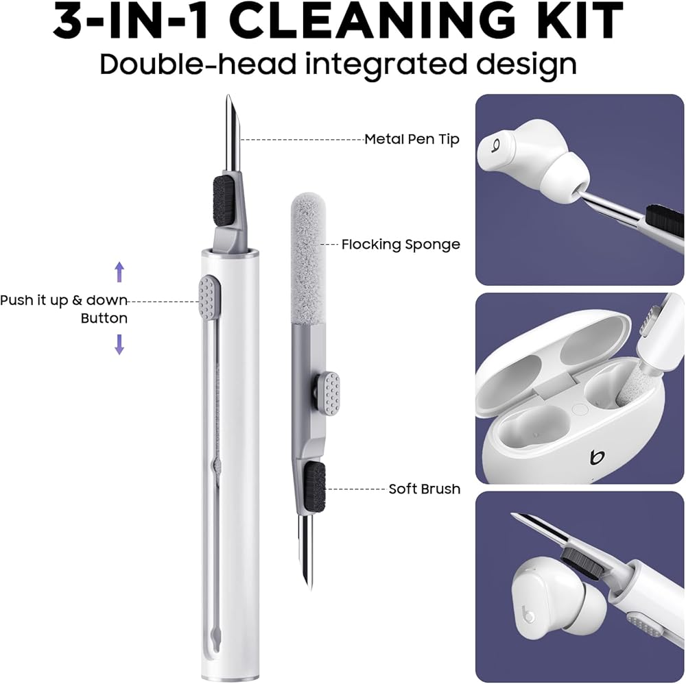 [مجموعة تنظيف 3 في 1] تأتي مع قلم تنظيف متعدد الوظائف مع أزرار ناعمة لأعلى ولأسفل لتنظيف سماعات الرأس بسهولة.