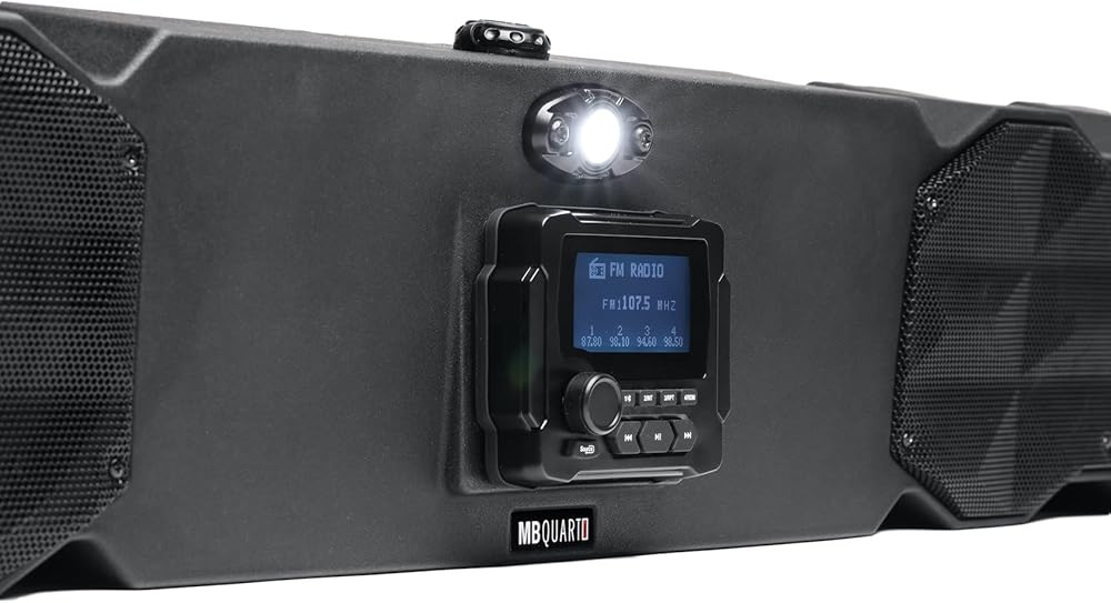 MB Quart 46 Inch Universal Overhead System, 4 Speaker with a GMR-LCD. AM/FM, waterproof Bluetooth source unit with built-in 160 watts of power, Android control.