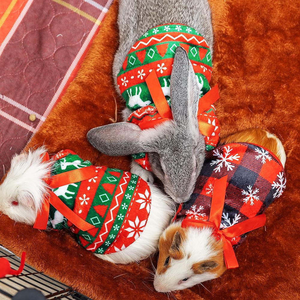 ملابس خنزير غينيا - عبوتان من سترة عيد الميلاد الدافئة للحيوانات الأليفة لخنازير غينيا والأرنب والأرنب والنمس شينشيلا والقطط والحيوانات الصغيرة - قمصان الحيوانات الأليفة المصنوعة من الصوف المريح واللطيف لعطلات الشتاء
