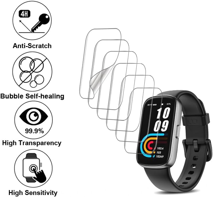 واقي شاشة متوافق مع الساعة الذكية لتتبع اللياقة البدنية VPSTAY ALB1 مقاس 1.47 بوصة، مادة TPU الناعمة، 6 عبوات، تغطية كاملة، شفاء ذاتي للفقاعات