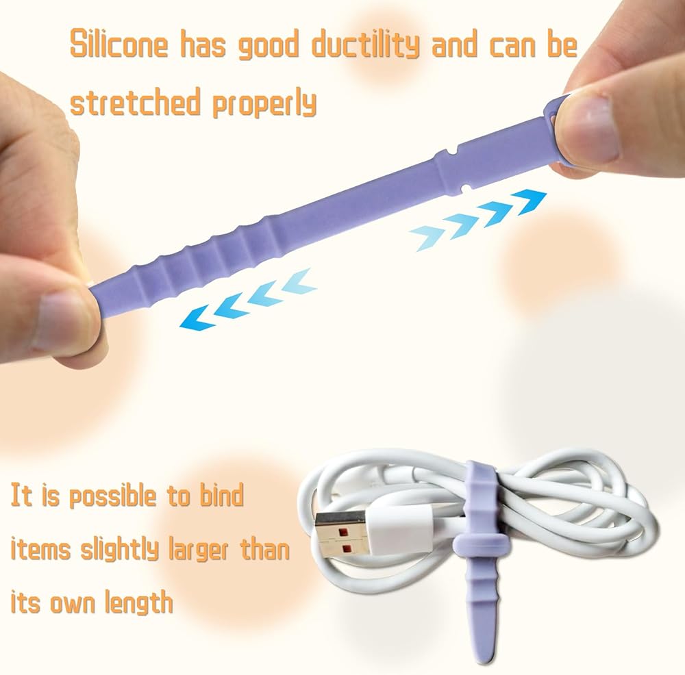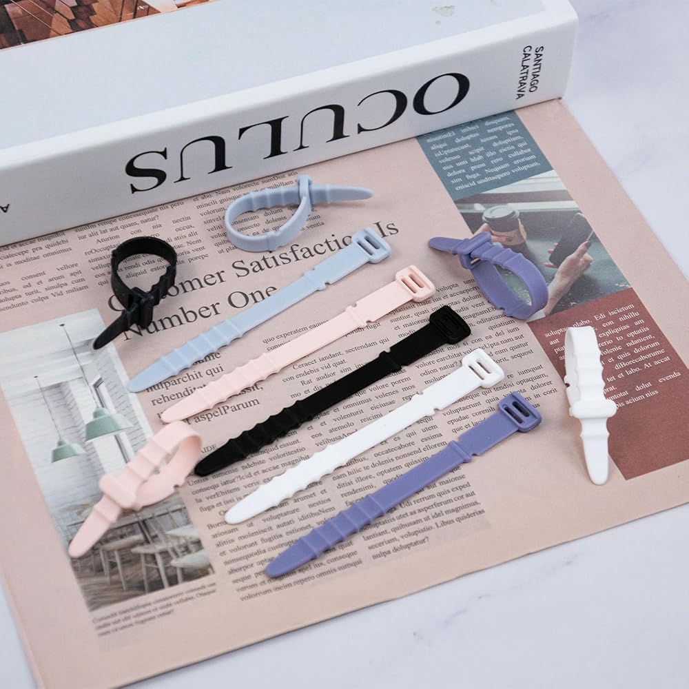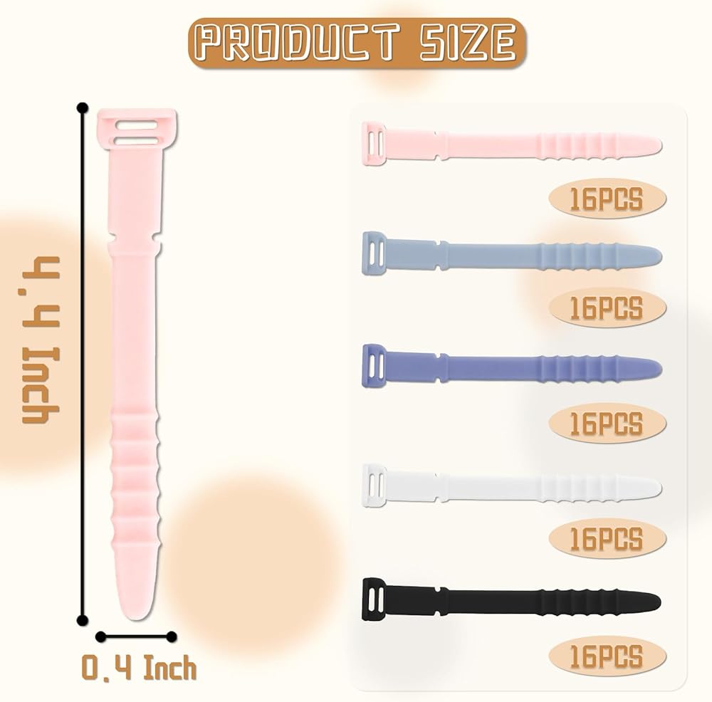 Package Contents: You will receive 80 pieces of elastic silicone cord organizer tapes, available in 5 colors: white, black, purple, pink and light blue, 16 pieces of each color, enough quantity will meet your daily use and replacement needs, there are two reusable holes at the end of the silicone zip tie that can lock the zipper groove. The reusable silicone ties have five zipper slots, making the tightness of the silicone ties adjustable.