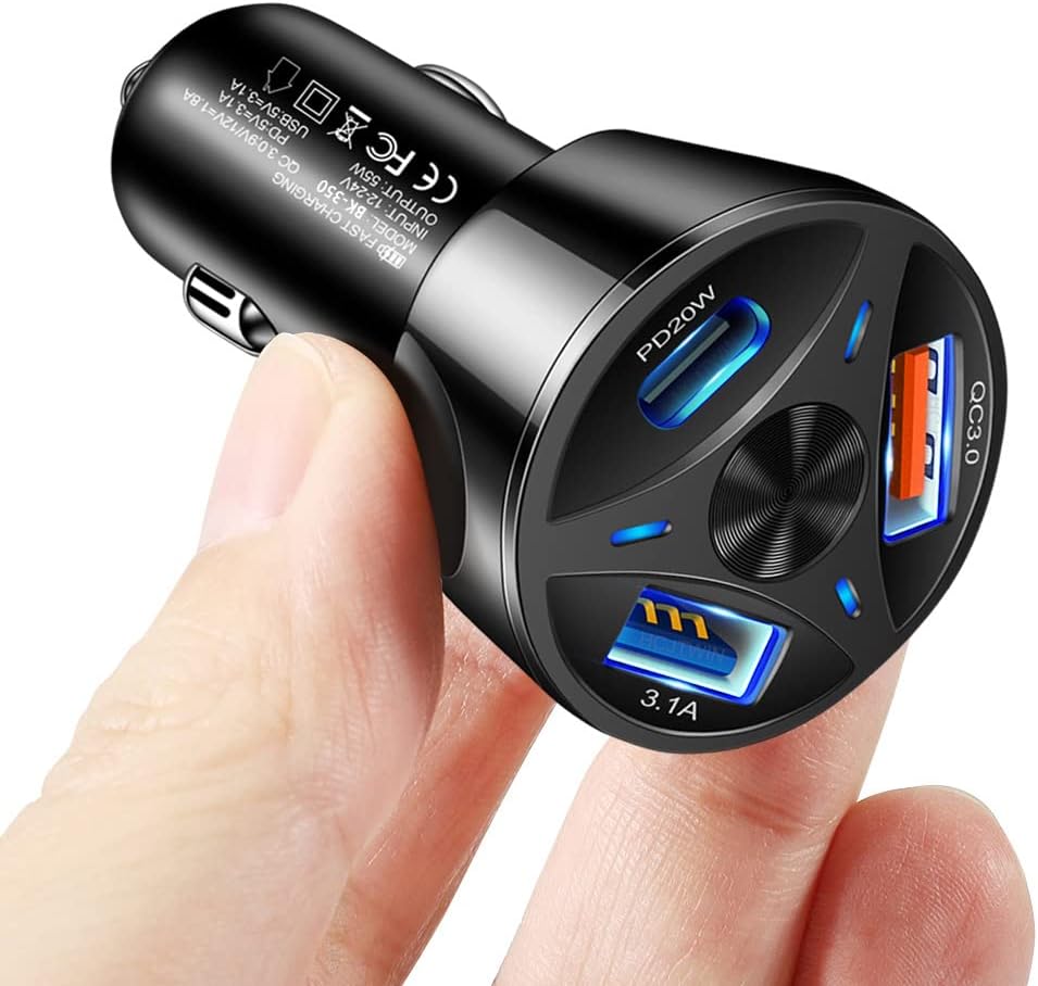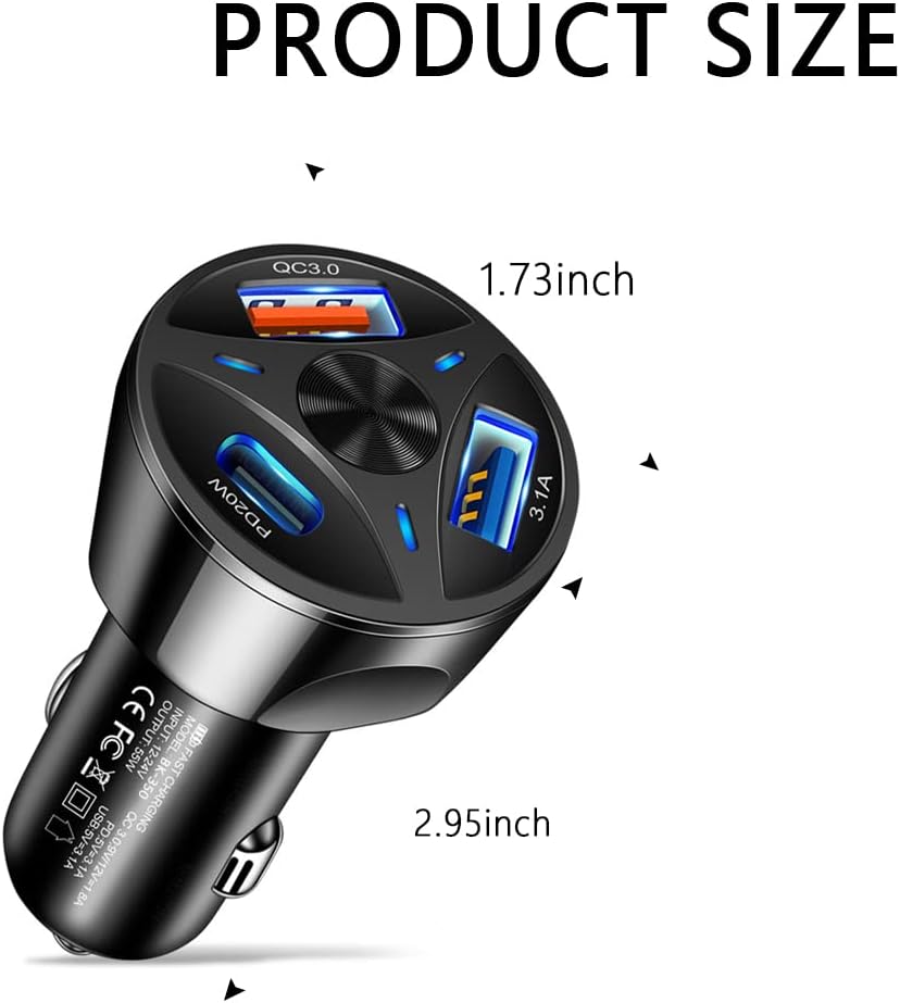 شاحن سيارة USB محمول 3 منافذ شحن سريع، PD20W/3.1A/QC3.0 محول شاحن سيارة USB متوافق مع iPhone 14 Pro MAX/13 MacBook Pro iPad Pro Switch Galaxy S22/S21