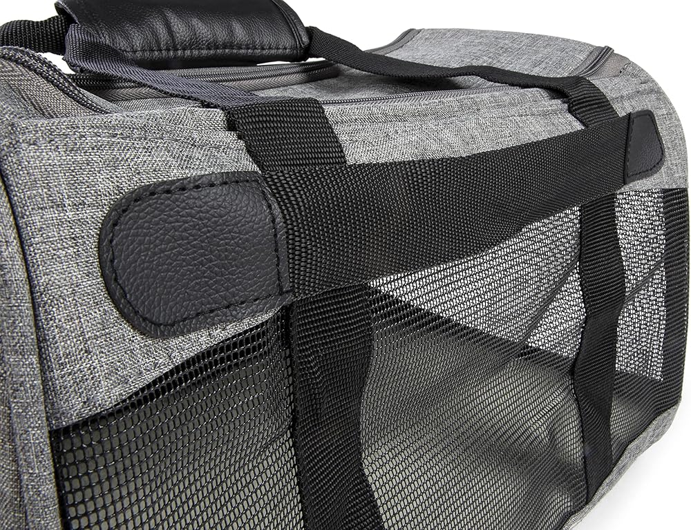 حاملة الحيوانات الأليفة معتمدة من شركة Sherpa Element Airline، بطانة ناعمة، نوافذ شبكية، إطار زنبركي، رمادي، متوسط