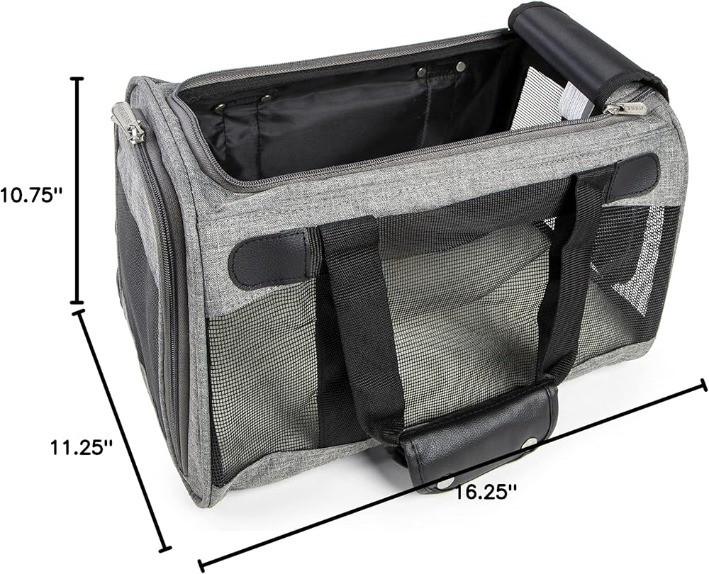 • IN-CABIN FRIENDLY: Our patented spring wire frame allows the rear end of the carrier to be pushed down several inches to easily fit under airplane seats in compliance with most major airline requirements and FAA regulations