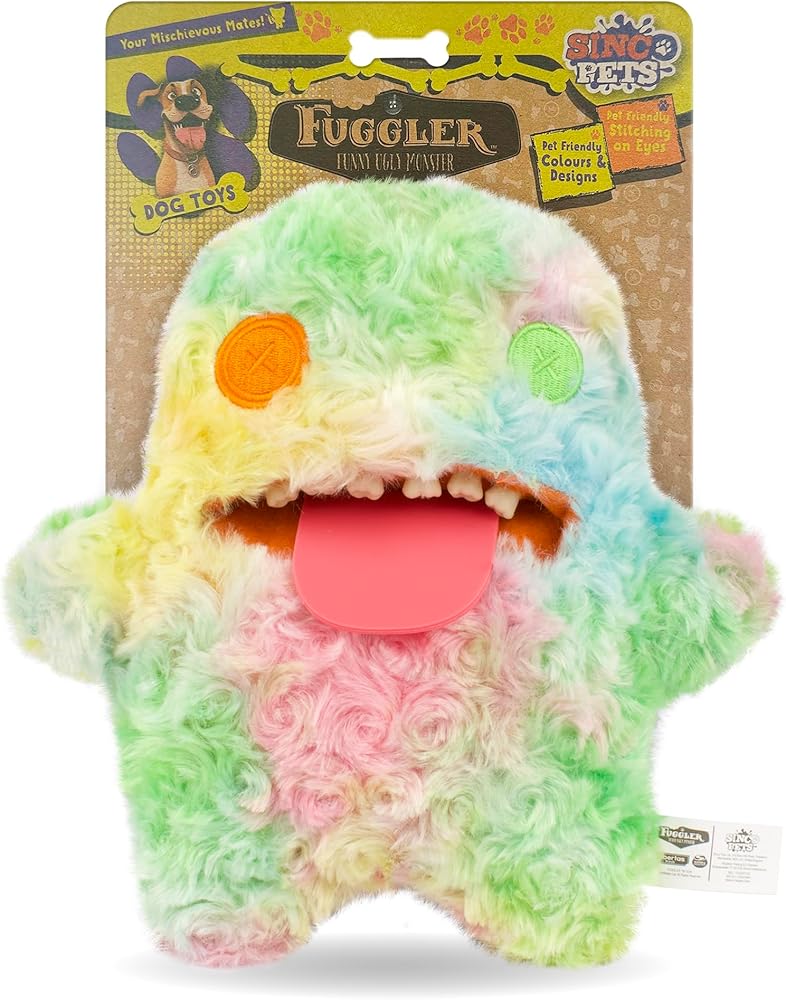 FUGGLER FUNNY UGLY MONSTER DOG TOY 3 PACK - ASSORTMENT 1 - Discover the perfect blend of quirky charm and durable fun with the Fuggler Funny Ugly Monster Dog Toy 3-Pack Assortment. Each toy is designed to delight both puppies and adult dogs, making them ideal mischievous mates for your furry friends. Each monster toy features pet-friendly stitching on its eyes, ensuring durability and safety during play. Engage your pet with interactive play. Includes a 3-pack of toys featuring a Squeaky Toy with Crinkle Ears for auditory stimulation, along with Rubber Teeth that engage your pet's senses through tactile play. MACHINE WASHABLE PLUSH: Made from soft plush material, these toys are machine washable, allowing for easy cleaning. The plush material offers safe playtime. Whether your pet is a curious puppy or a playful adult dog, these toys are crafted to be the perfect companions, providing hours of entertainment and companionship. Bring home the Fuggler Funny Ugly Monster Dog Toy 3-Pack Assortment and treat your pet to endless fun and excitement!