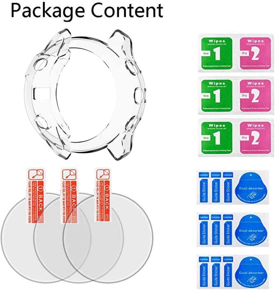 • Designed for :Compatible for garmin fenix 6 pro/fenix 6,(3 pcs) Tempered Glass Film and (1 pcs) Soft TPU Protective Case